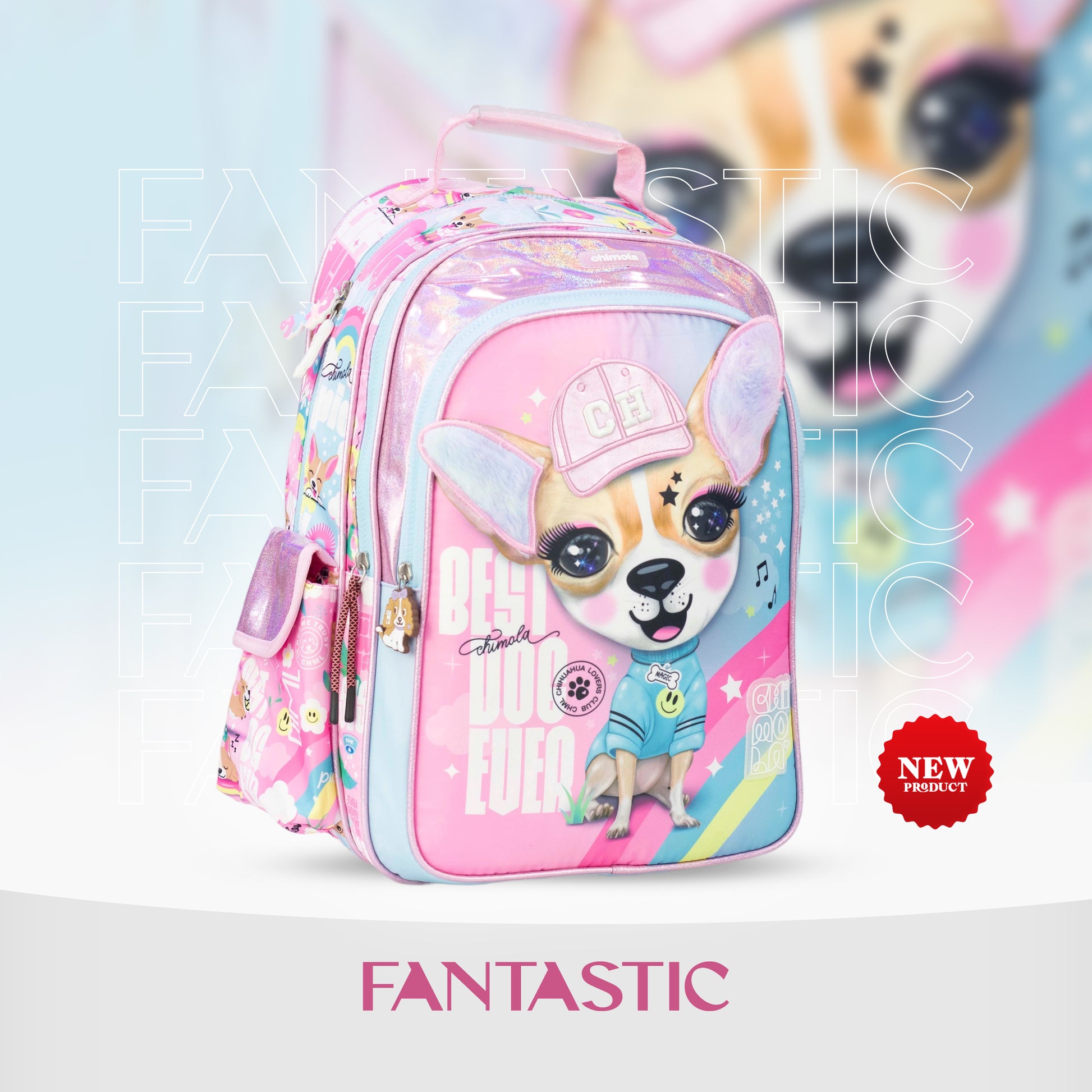 حقيبة ظهر تشيمولا للأطفال تجمع بين التصميم الجذاب والوظائف العملية. تتميز برسمة كلب لطيف مع ألوان وردية وقوس قزح تضفي لمسة مرحة وعصرية. متعددة الجيوب لتنظيم أغراض طفلك بسهولة، مما يجعلها مثالية للمدرسة أو الرحلات اليومية. خفيفة الوزن ومريحة، هذه الحقيبة سترافق طفلك بكل نشاطاته بثقة وأناقة.مقاس 18 بوصة