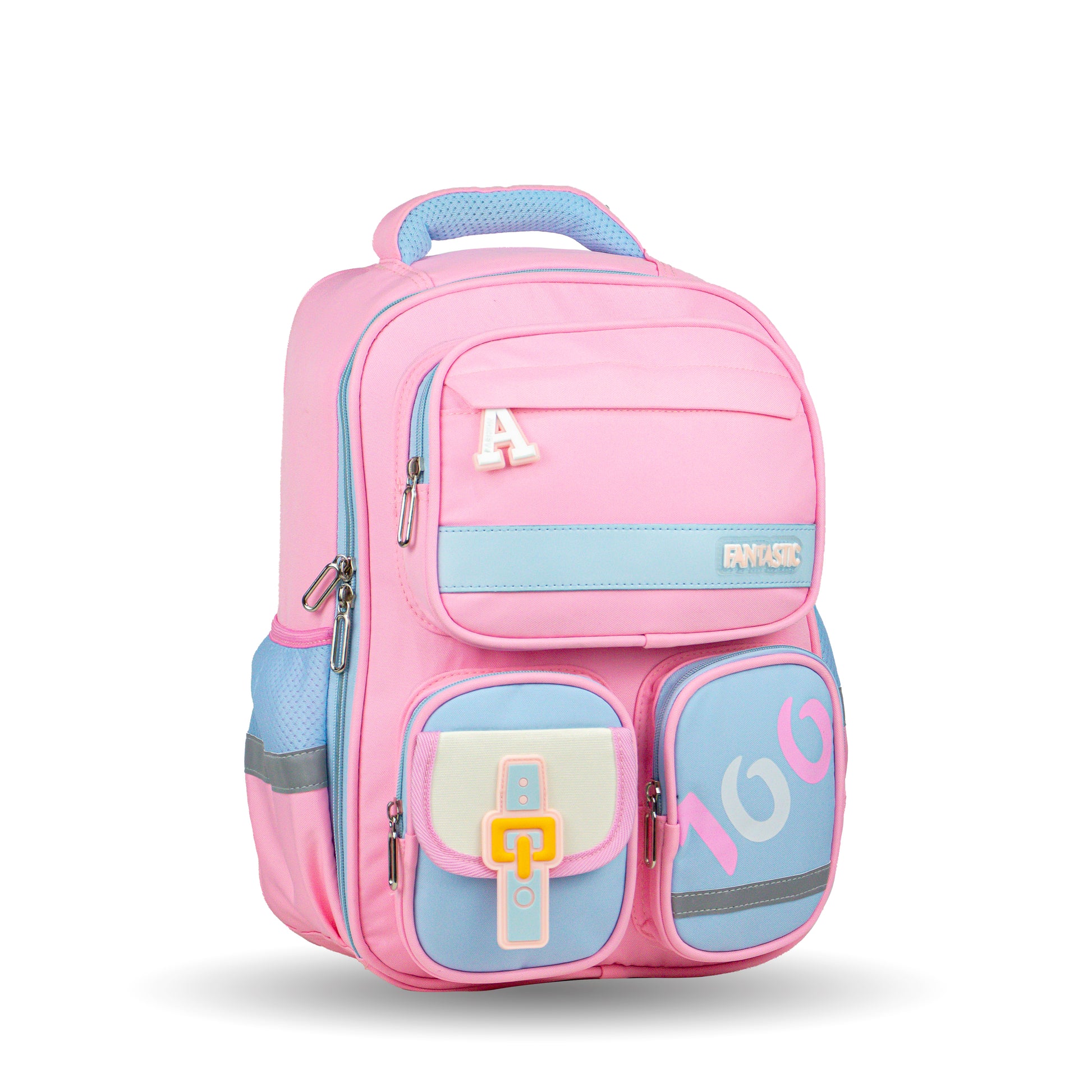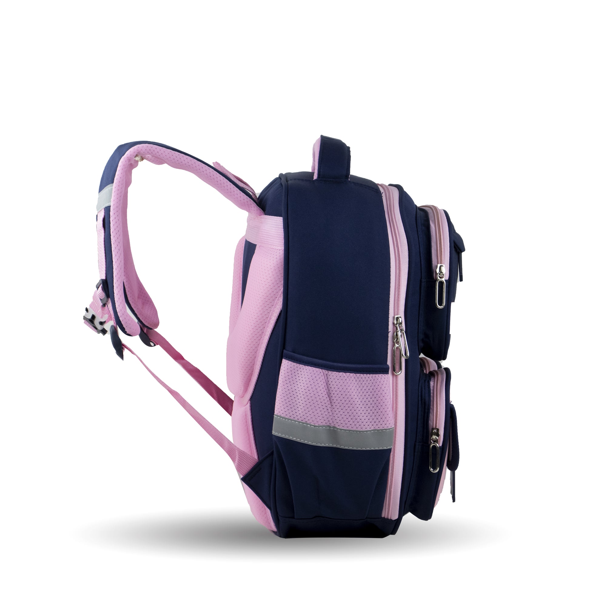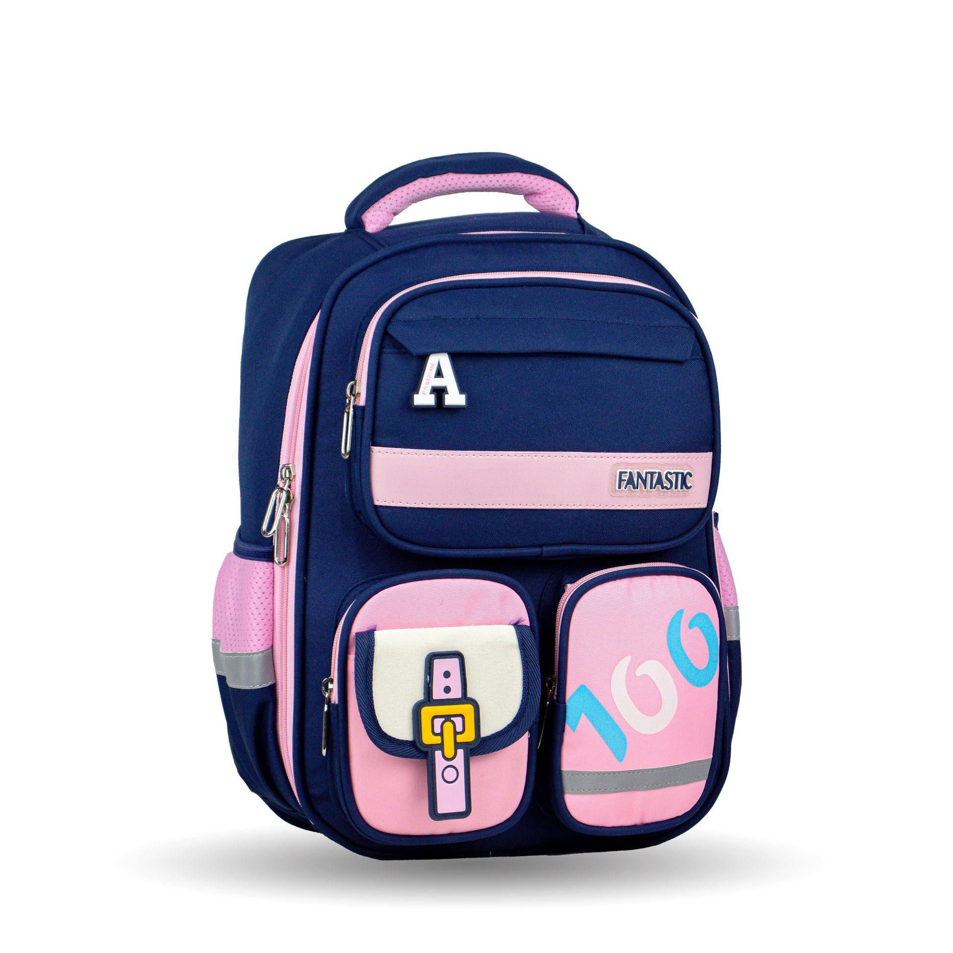 حقيبة ظهر فانتاستيك المدرسية بألوان كحلي وزهري جذابة، مثالية للأطفال الذين يحبون التنظيم والمرح! بقياس ٤٥ سم، توفر هذه الحقيبة جيوب متعددة لتخزين كل مستلزمات المدرسة بسهولة وأمان. تصميمها المريح يجعلها رفيقًا مثاليًا ليوم دراسي مليء بالنشاط والحيوية.