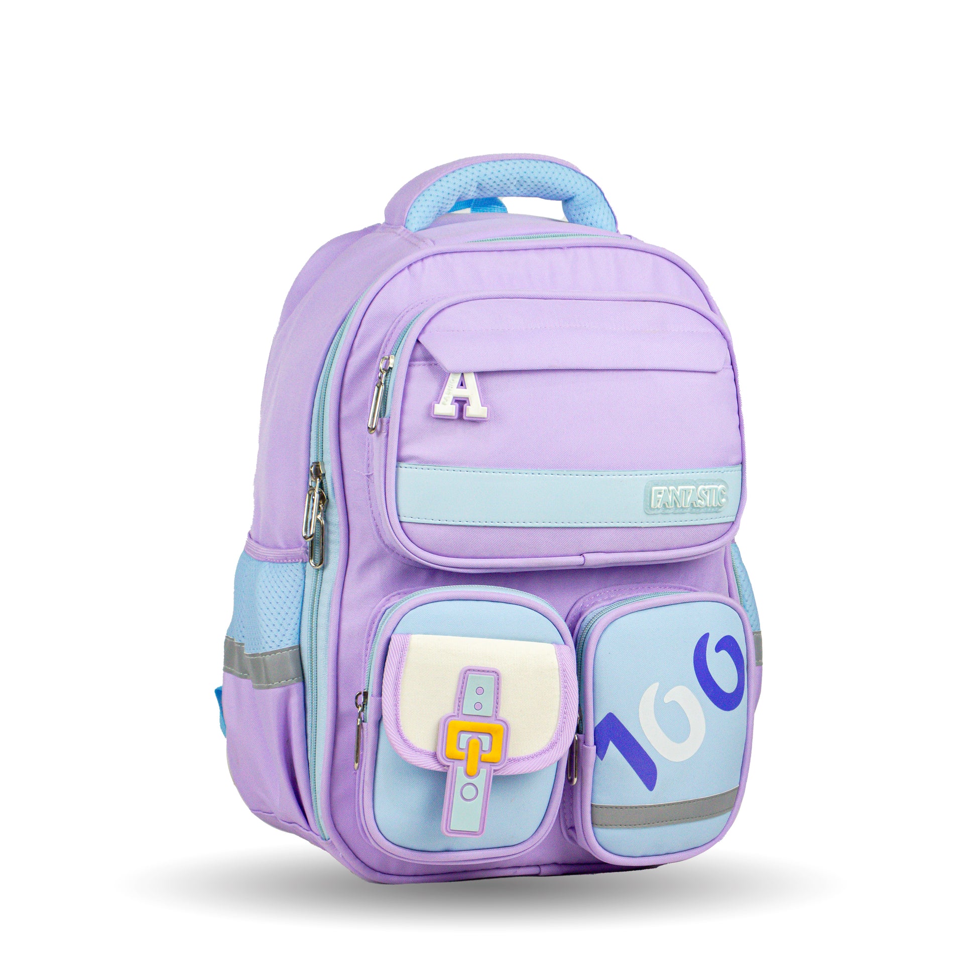 CS006 حقيبة ظهر مدرسية فانتاستيك، متعددة الألوان، تصميم عصري، متوفرة باللون البنفسجي والوردي والكحلي، ٤٥ سم، جيوب متعددة، للأطفال