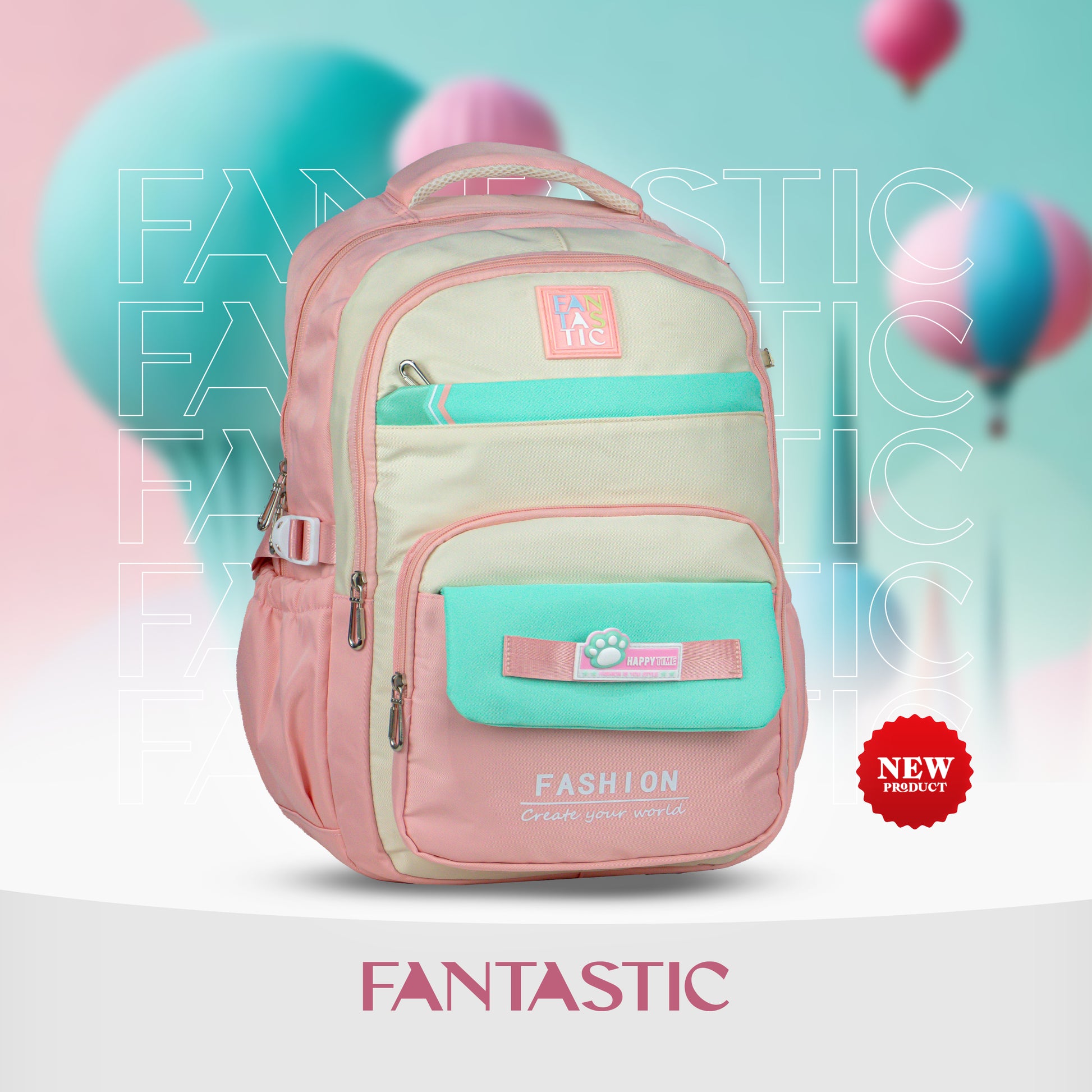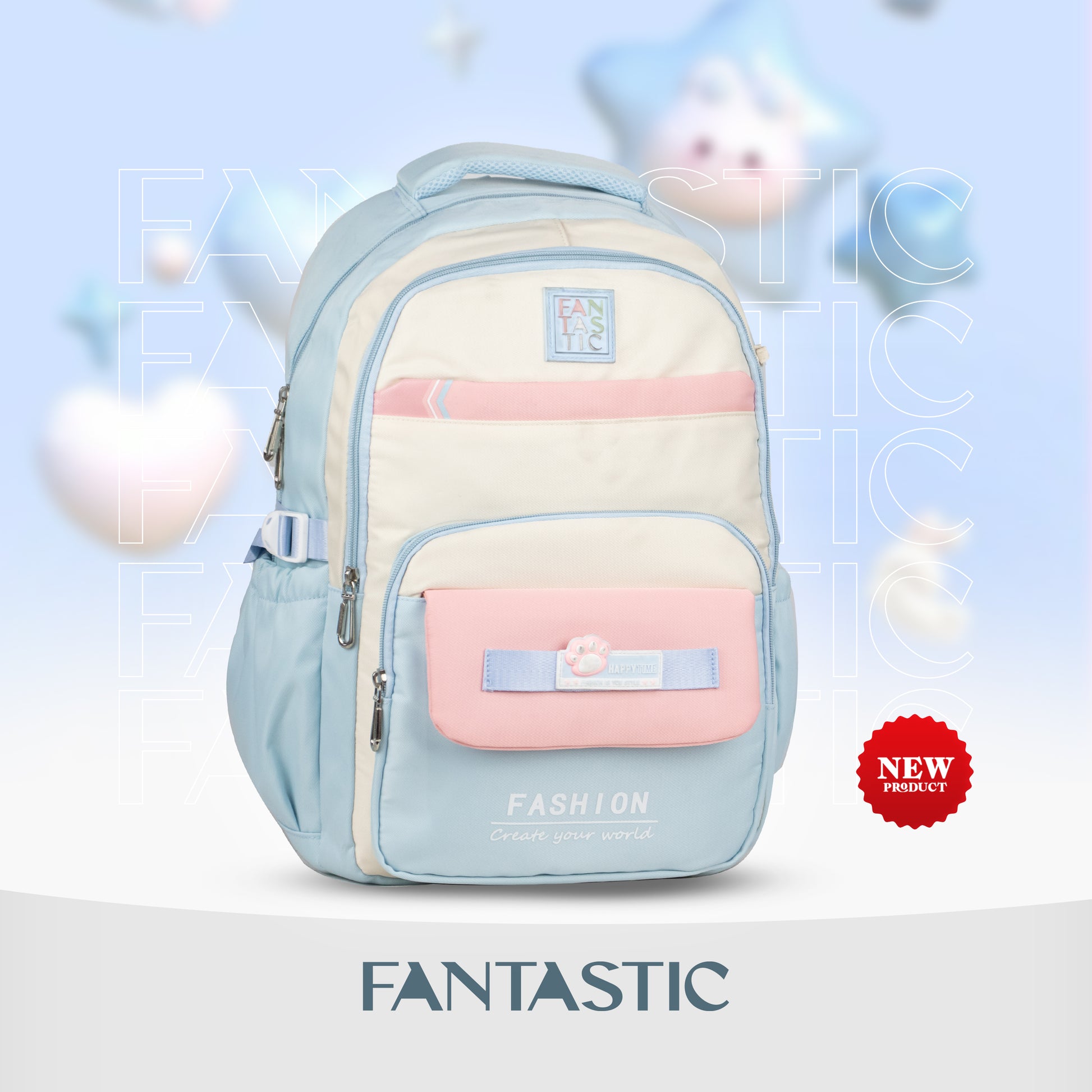 CS023 حقيبة ظهر فانتاستيك مدرسية، أزرق فاتح ووردي، ٤٥ سم، جيوب متعددة
