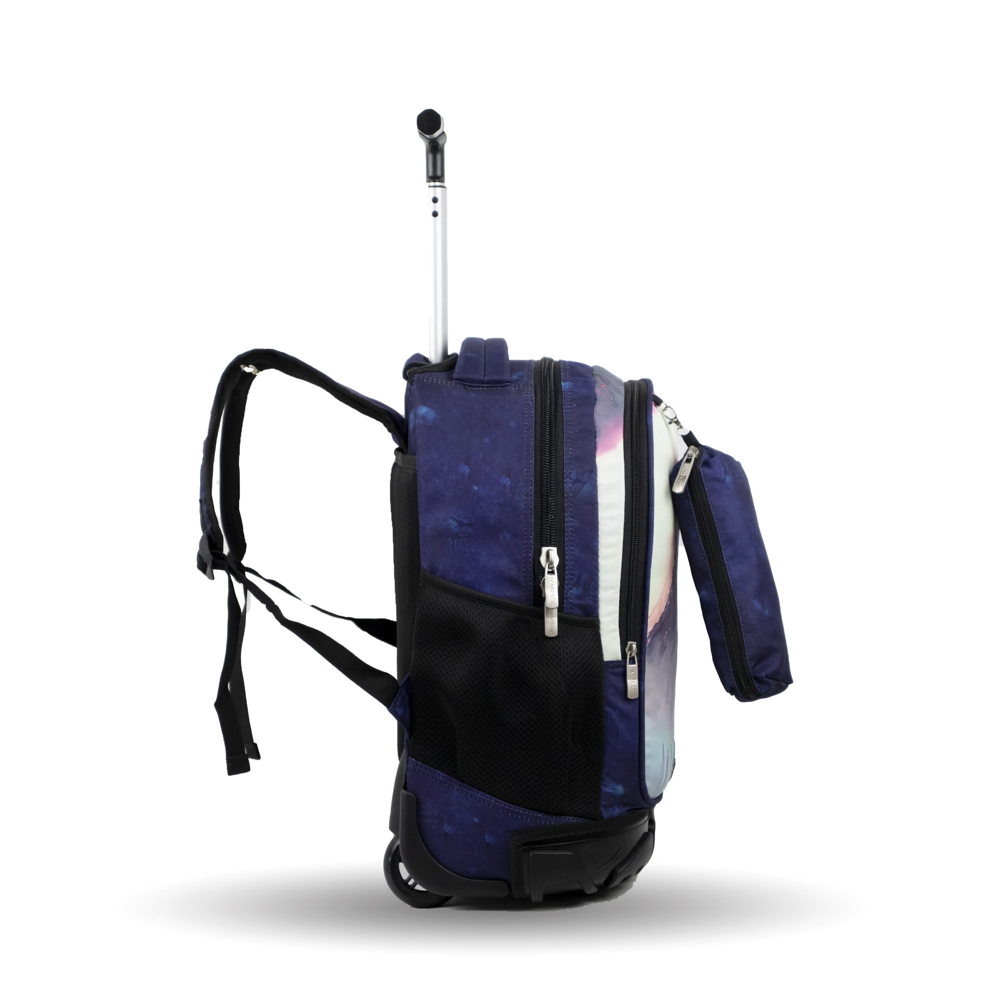ODS4 حقيبة ظهر فانتاستيك مدرسية بعجلات، تصميم فضائي، ٤٥.٧٢ سم، أسود وأزرق