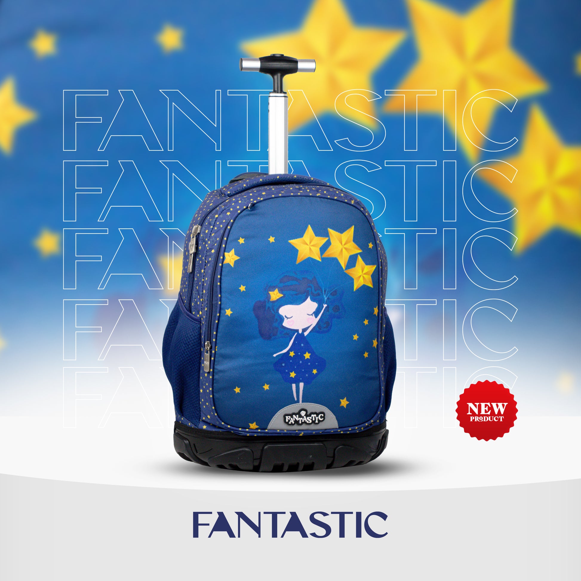 حقيبة ظهر فانتاستيك المدرسية بعجلات تأتي بتصميم نجوم جذاب ولون أزرق مفعم بالحيوية. بقياس ٤٥ سم، توفر مساحة مثالية لحمل الكتب واللوازم المدرسية بسهولة. العجلات تجعل التنقل بها ممتعًا وسلسًا، مما يجعلها رفيقًا مثاليًا لكل يوم دراسي مليء بالمغامرات والمرح.