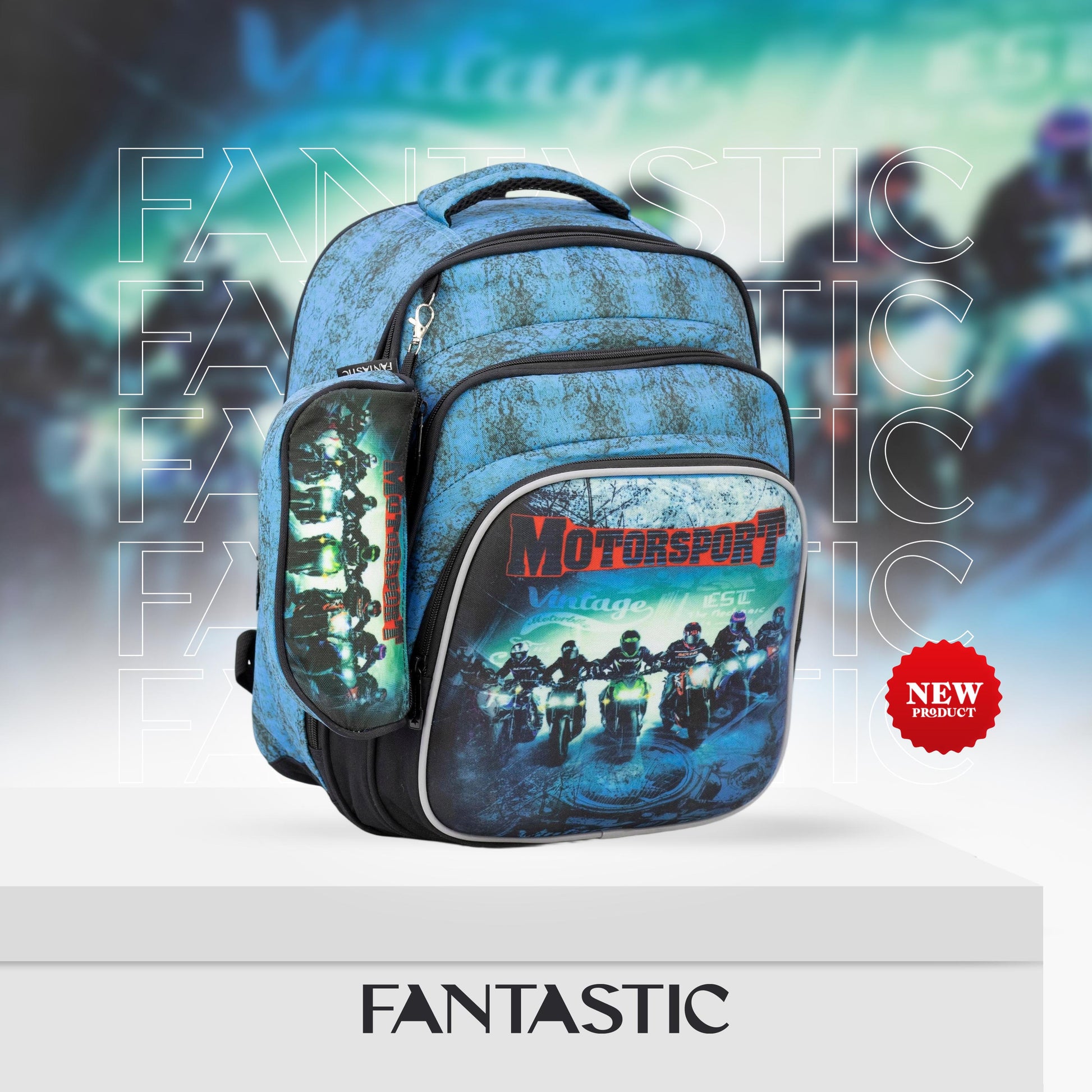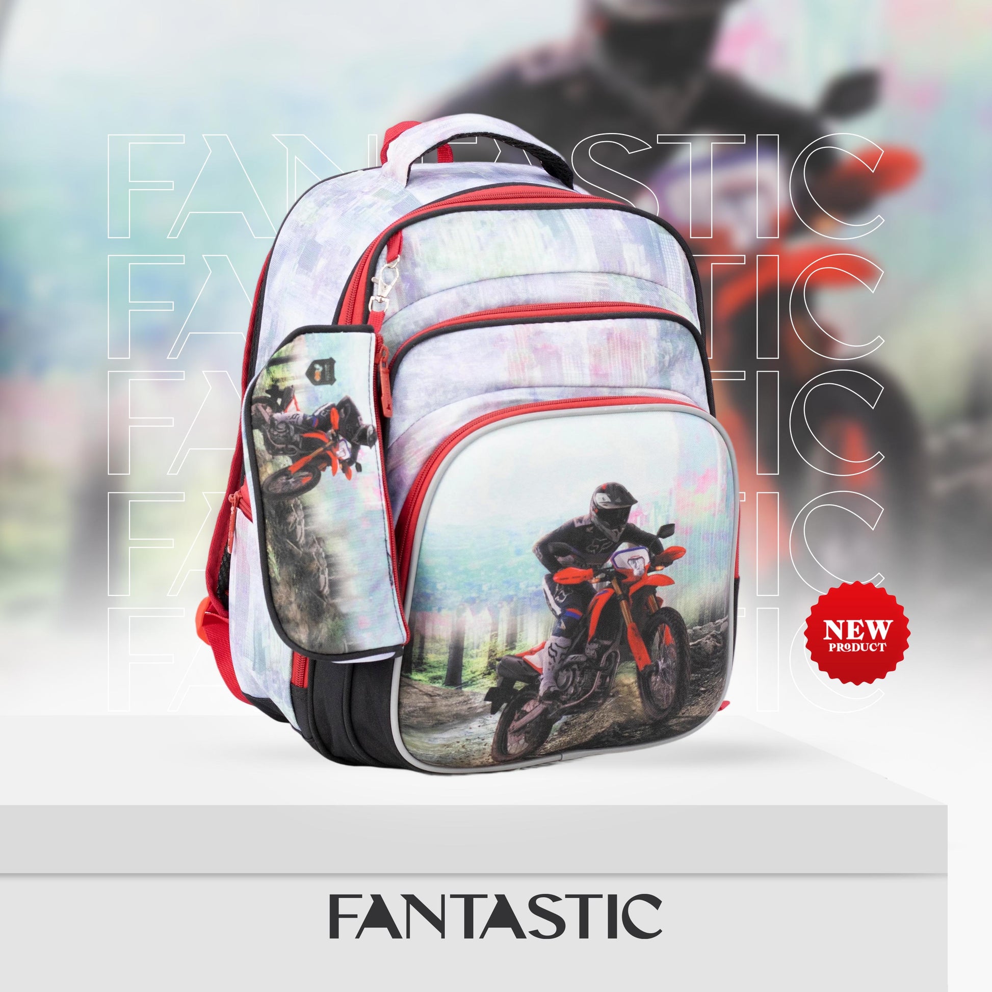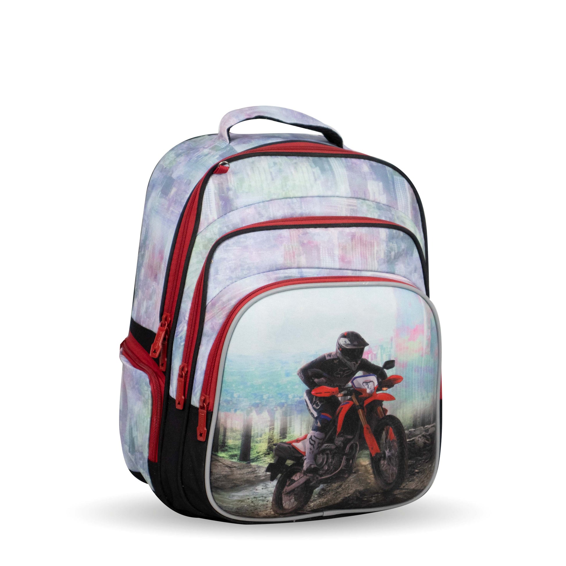 XT080 حقيبة ظهر مدرسية أولادي بنمط عصري، متعددة الجيوب، تصميم رياضي مقاس 16 بوصة
