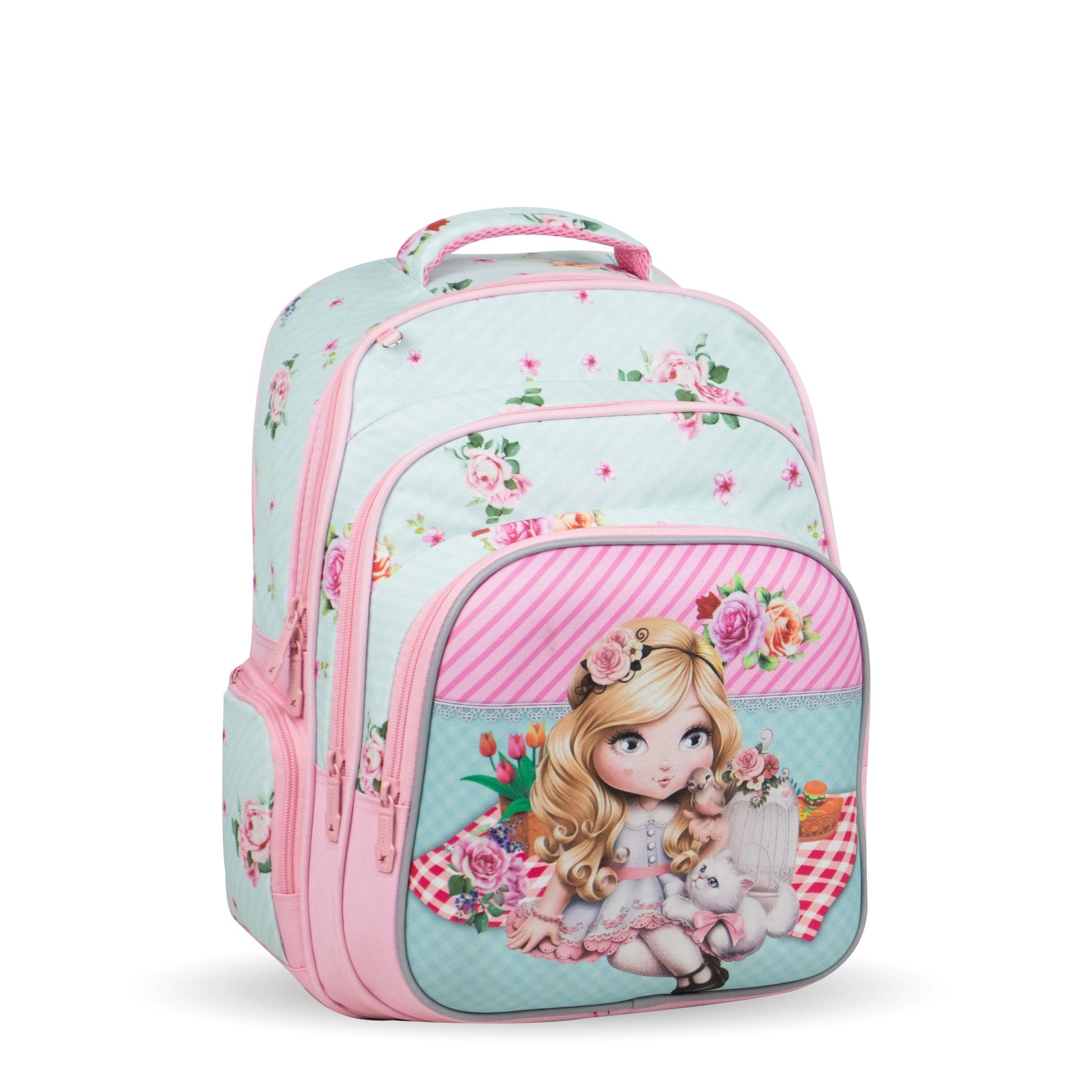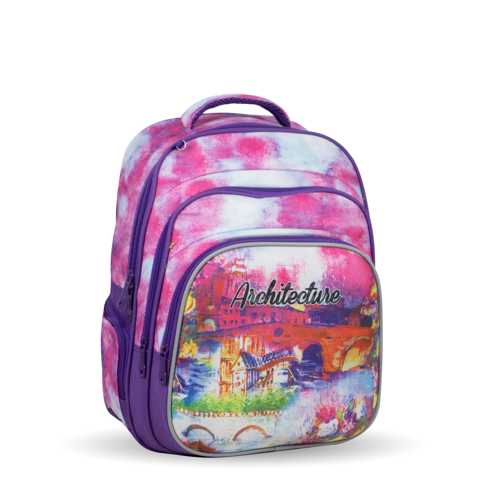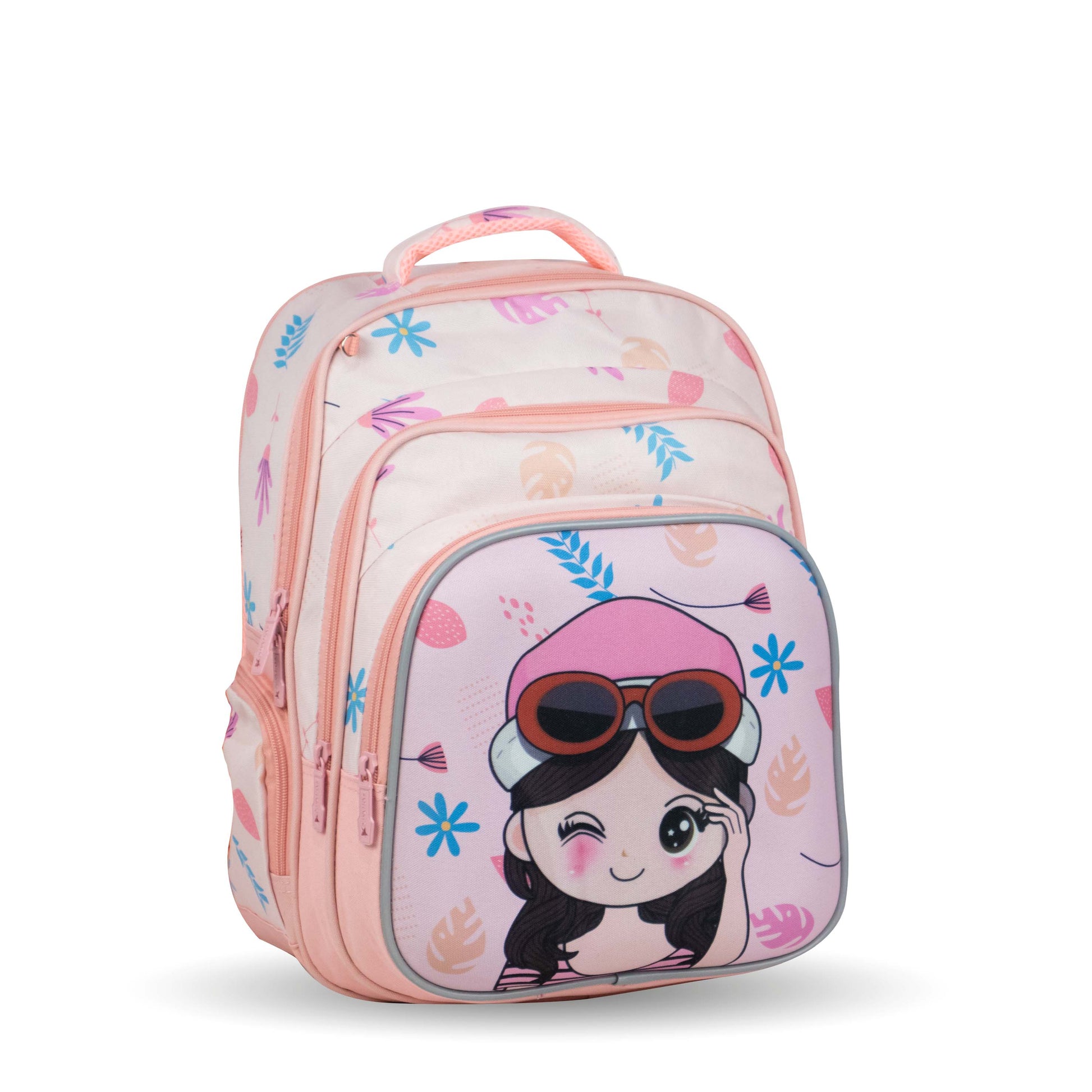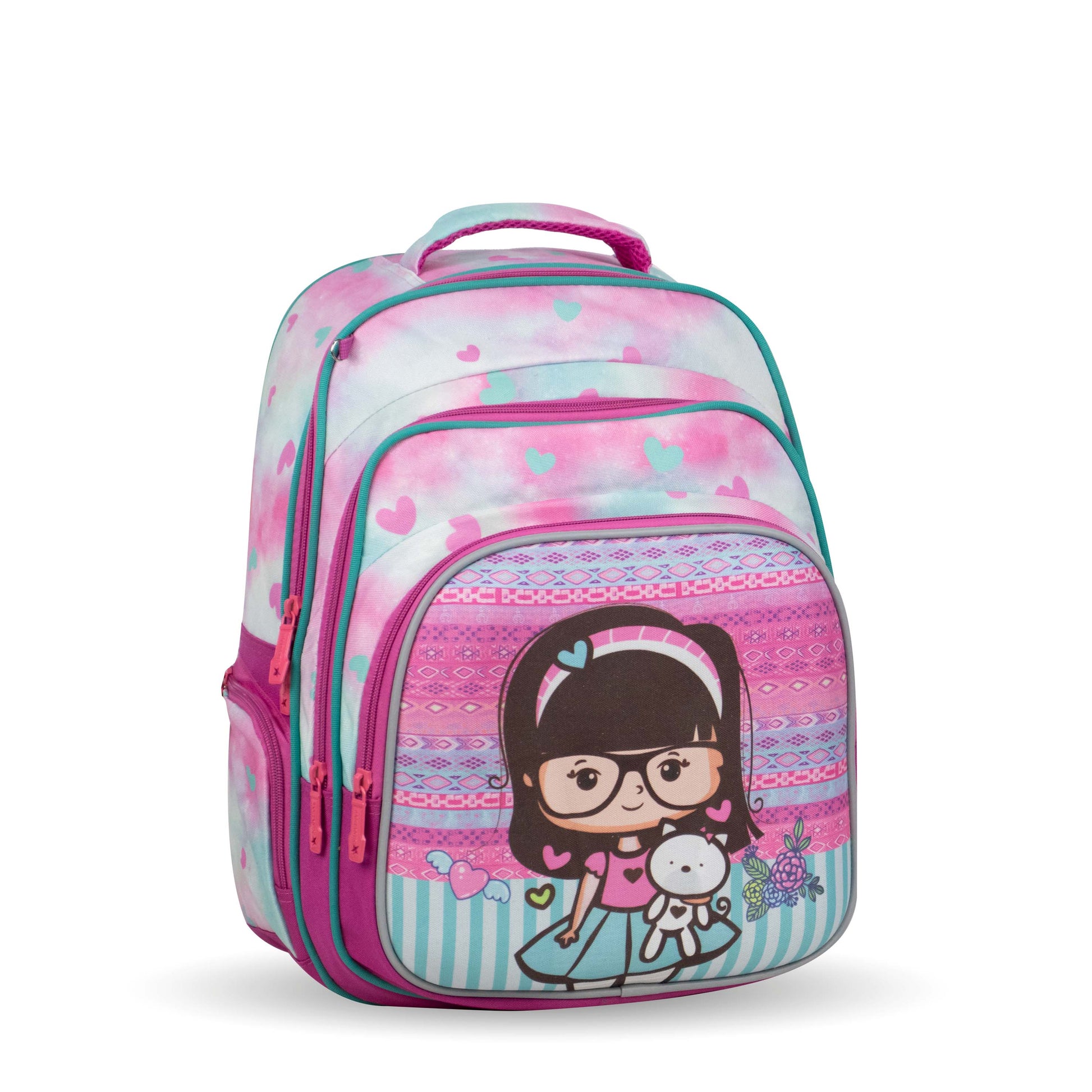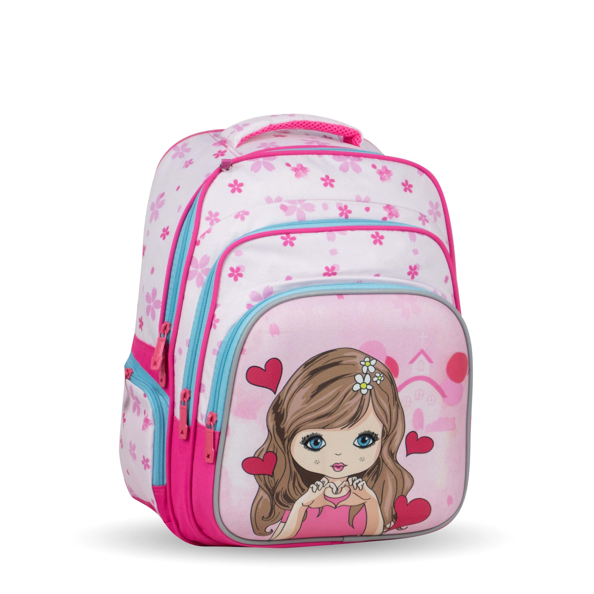 XT080 حقيبة ظهر مدرسية بناتي بنمط عصري، متعددة الجيوب، تصميم رياضي مقاس 16 بوصة