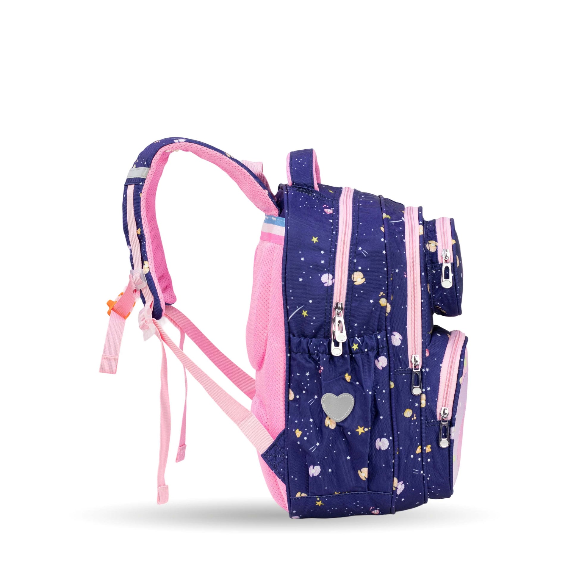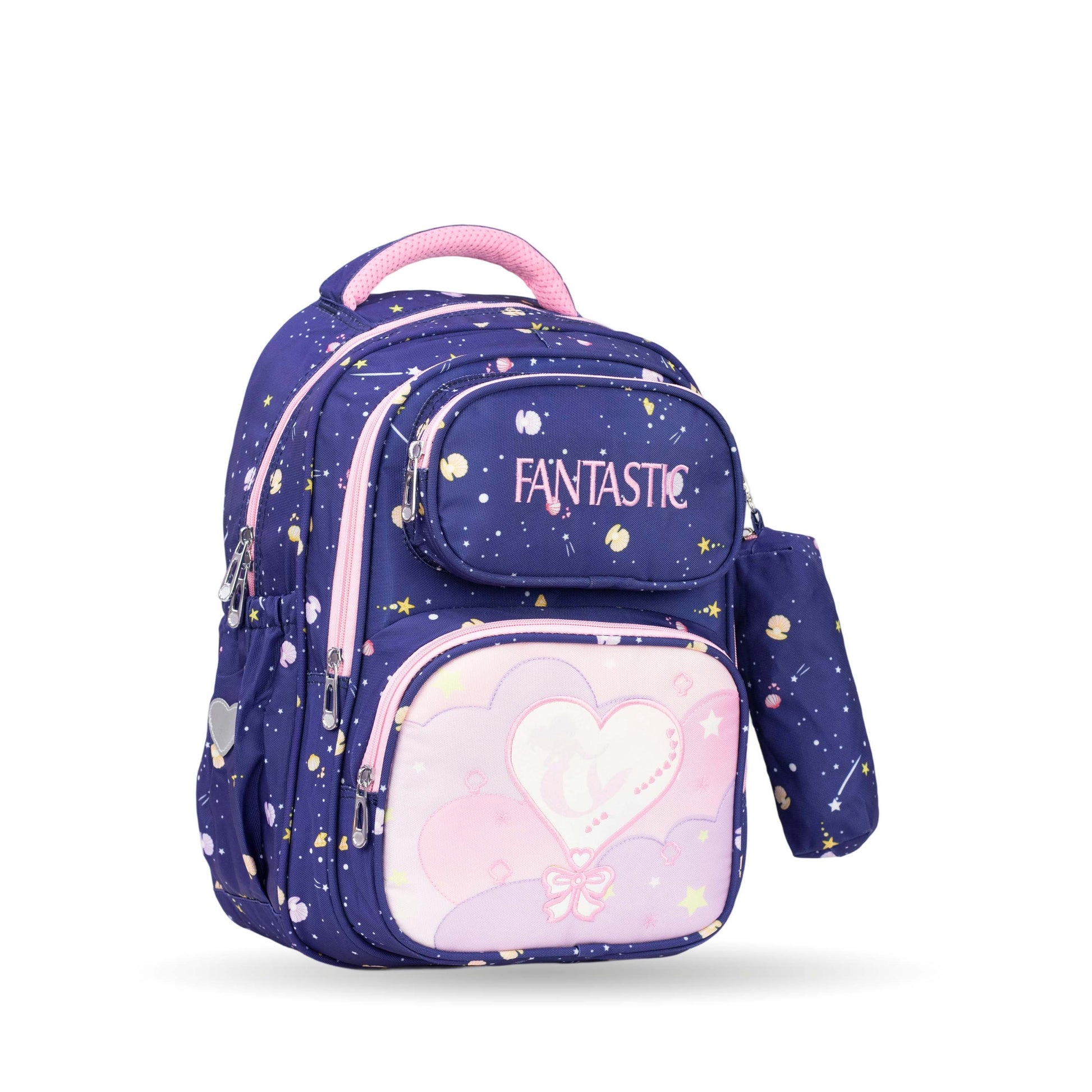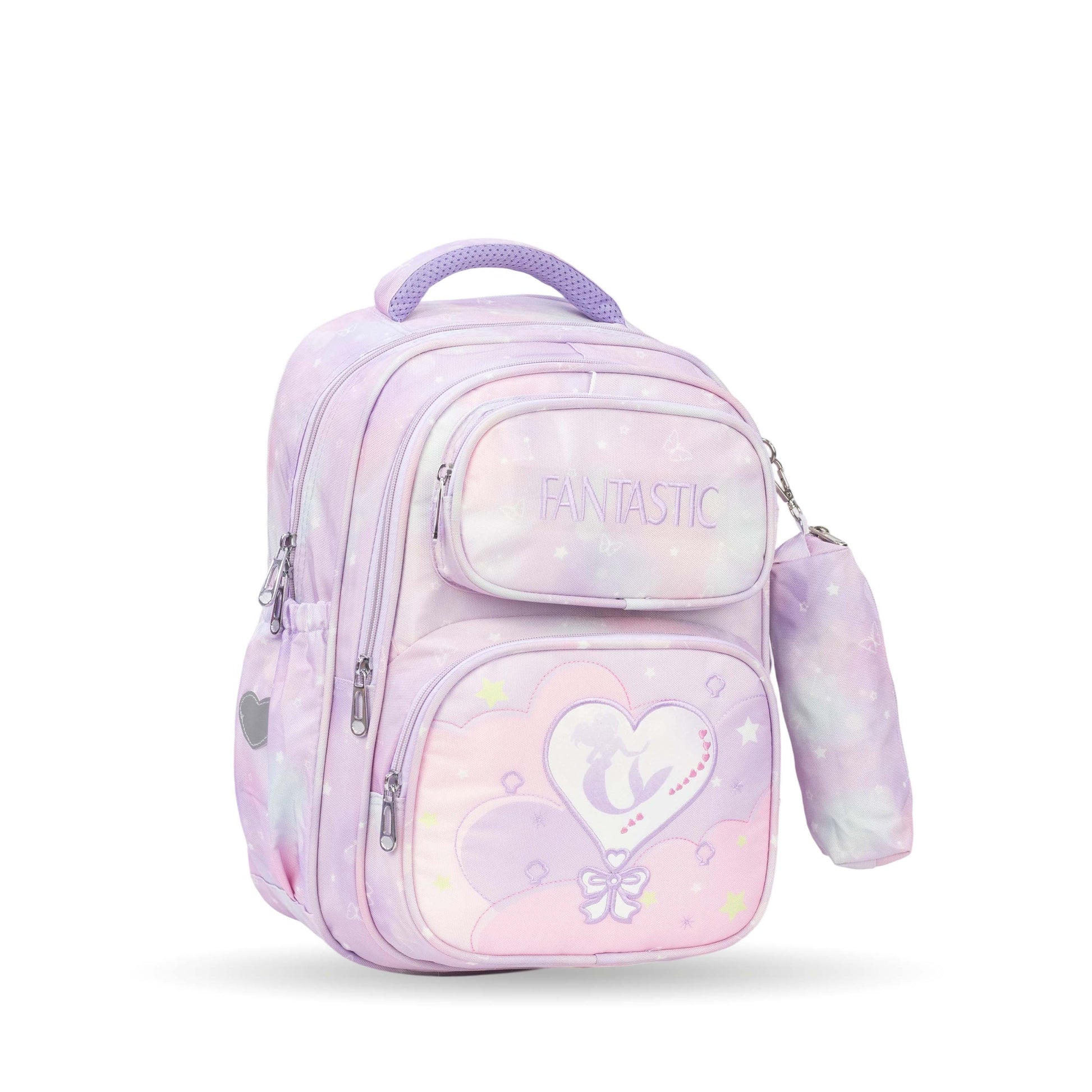 حقيبة الظهر المدرسية فانتاستيك بتصميم قلب وفراشة تجمع بين الأناقة والعملية. تتميز بعدة جيوب لتنظيم الكتب والأدوات بسهولة، بالإضافة إلى حقيبة جانبية لحمل الزجاجات أو المستلزمات الصغيرة. متوفرة بألوان متعددة تناسب جميع الأذواق، هذه الحقيبة مثالية للطلاب الباحثين عن الراحة والجودة في آن واحد.مقاس 18 بوصة