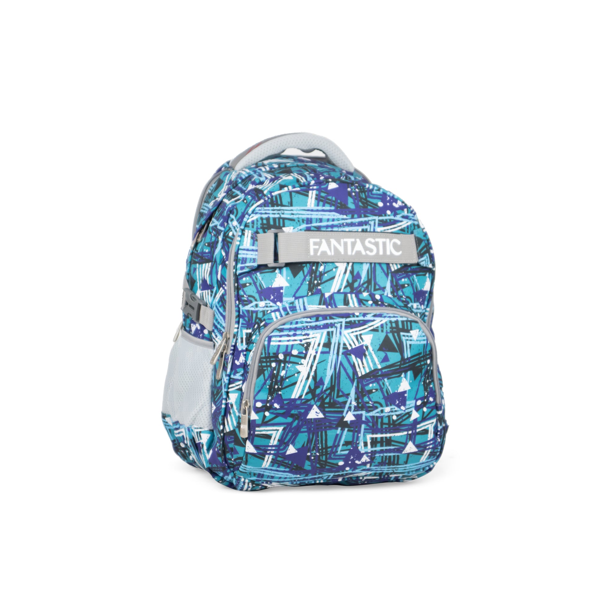 حقيبة ظهر مدرسية عصرية تتميز بتصميم هندسي أنيق بتدرجات اللون الأزرق والتركواز. مصنوعة من النايلون المتين مع بطانة داخلية من البوليستر لمتانة إضافية. تحتوي على خمسة جيوب منظمة، منها ثلاثة بسحابات، مما يوفر مساحة تخزين مثالية للكتب والأدوات المدرسية. الحقيبة مجهزة بظهر مبطن وأحزمة كتف قابلة للتعديل لضمان الراحة القصوى أثناء الاستخدام. تتميز بسعة 25 لتر وتناسب أجهزة الكمبيوتر المحمول حتى مقاس 15.6 بوصة. مزودة بجيوب شبكية جانبية لحمل زجاجات المياه ومقبض علوي للحمل السهل. الحقيبة مقاومة للماء وتحمل شعار 'FANTASTIC' المميز على الواجهة. مثالية للاستخدام اليومي في المدرسة والرحلات القصيرة، وتناسب الطلاب من سن 6 سنوات فما فوق. أبعاد الحقيبة 30 × 45 × 30 سم، ووزنها 950جرام، مما يجعلها خفيفة ومريحة للاستخدام اليومي.