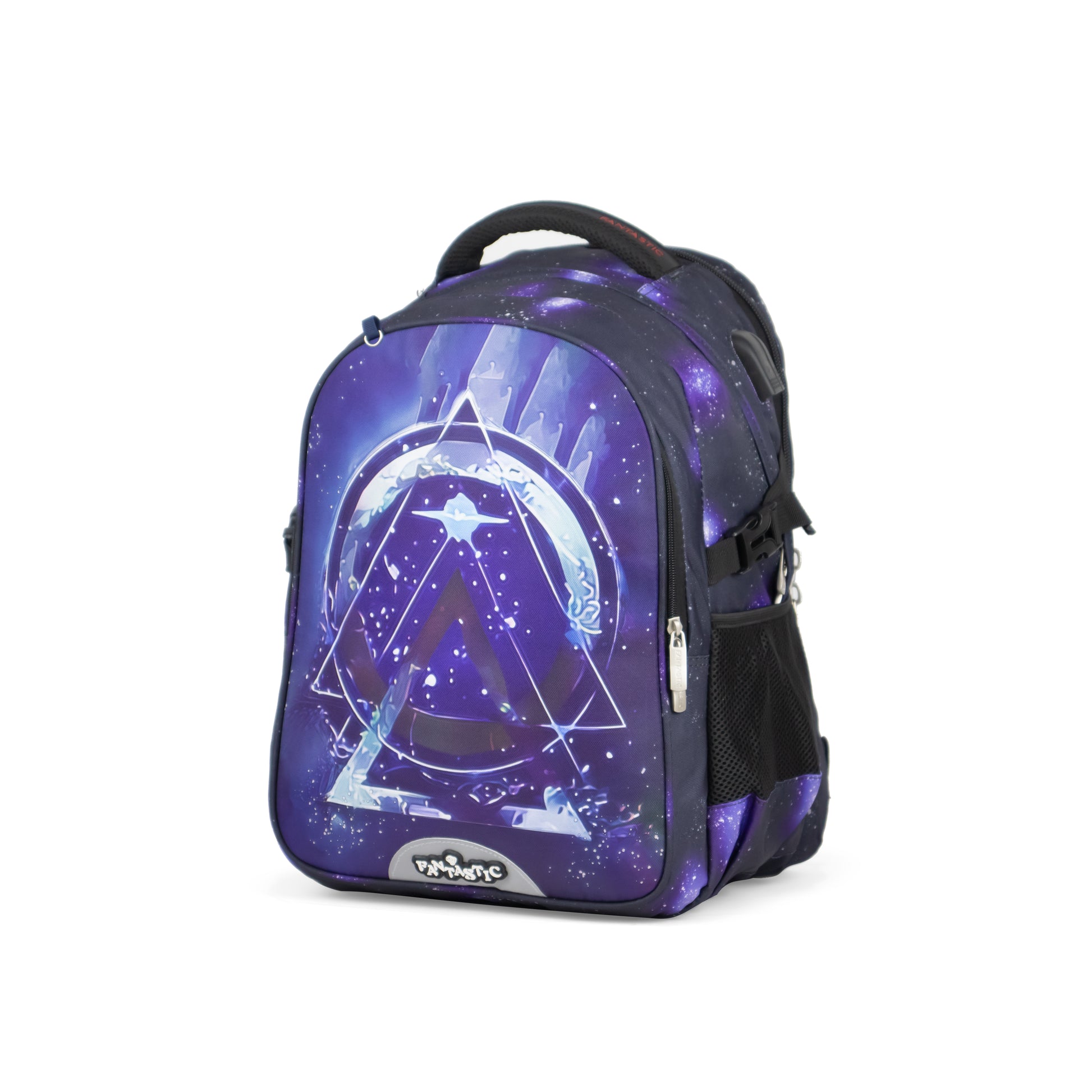 ODS1 حقيبة ظهر مدرسية مع تصميم فضائي، 18 بوصة، بنفسجي، مع جيوب متعددة وظهر مبطن بشبكة تهوية، مناسبة للمدرسة والاستخدام اليومي