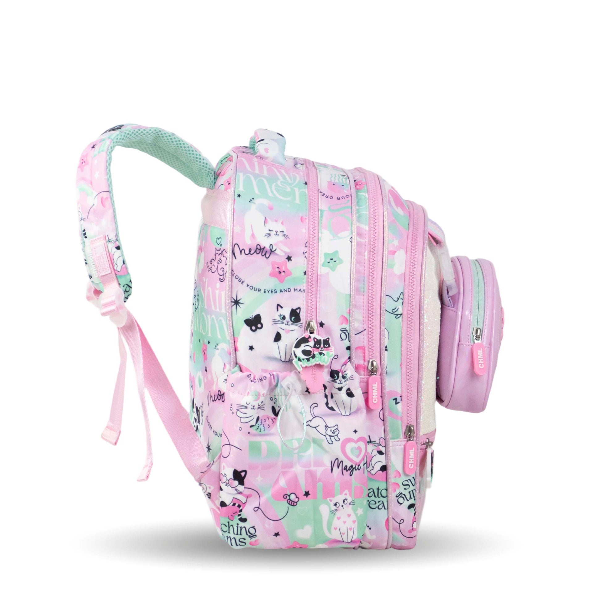امنحي طفلكِ شنطة ظهر مميزة تجمع بين الأناقة والعملية. بتصميم قطة جذاب وألوان وردي ومنت ناعمة، هذه الشنطة مزودة بجيوب متعددة لتنظيم أغراض الطفل بسهولة. التفاصيل البراقة تضيف لمسة من المرح والتميز، مما يجعلها الخيار الأمثل ليوم دراسي مليء بالنشاطات.