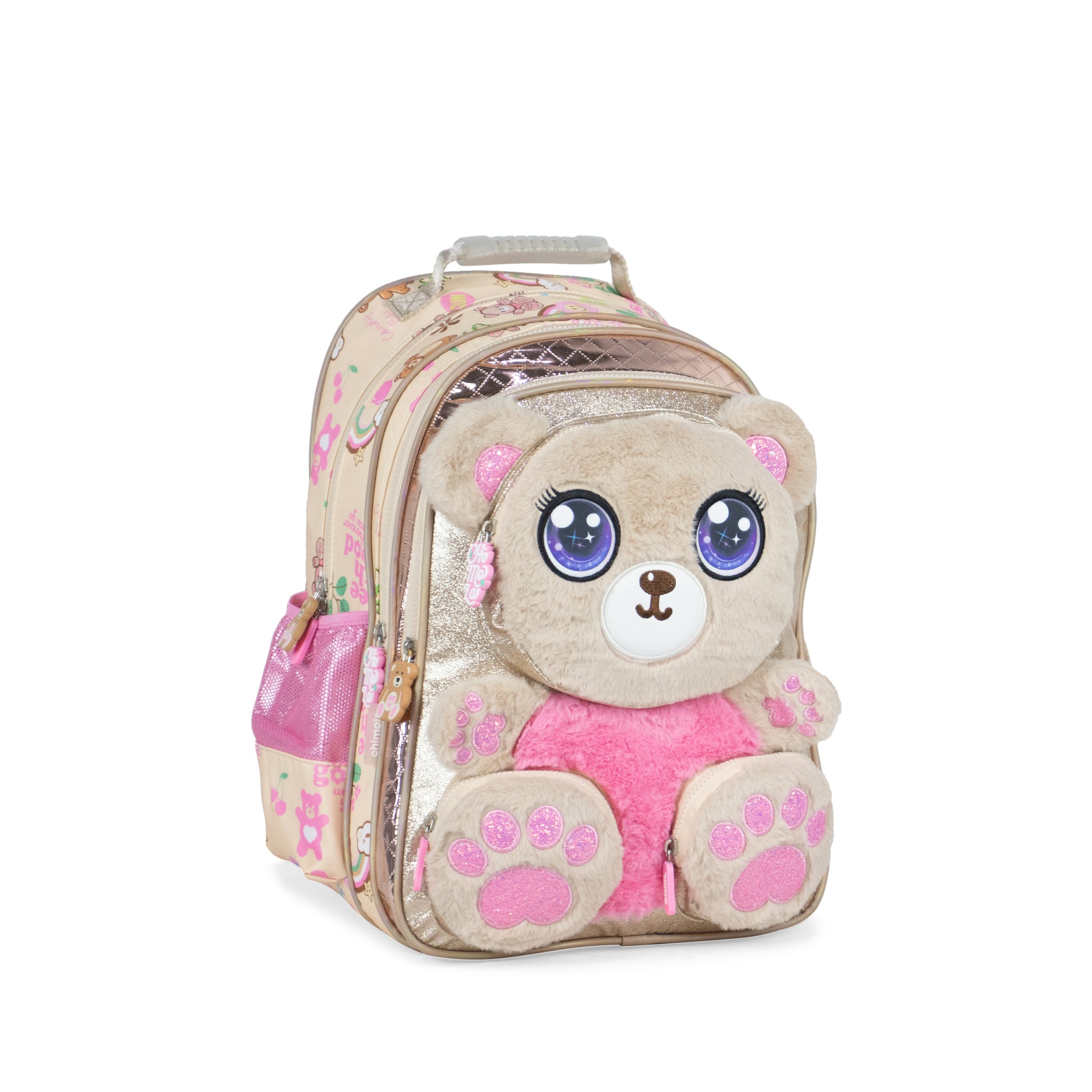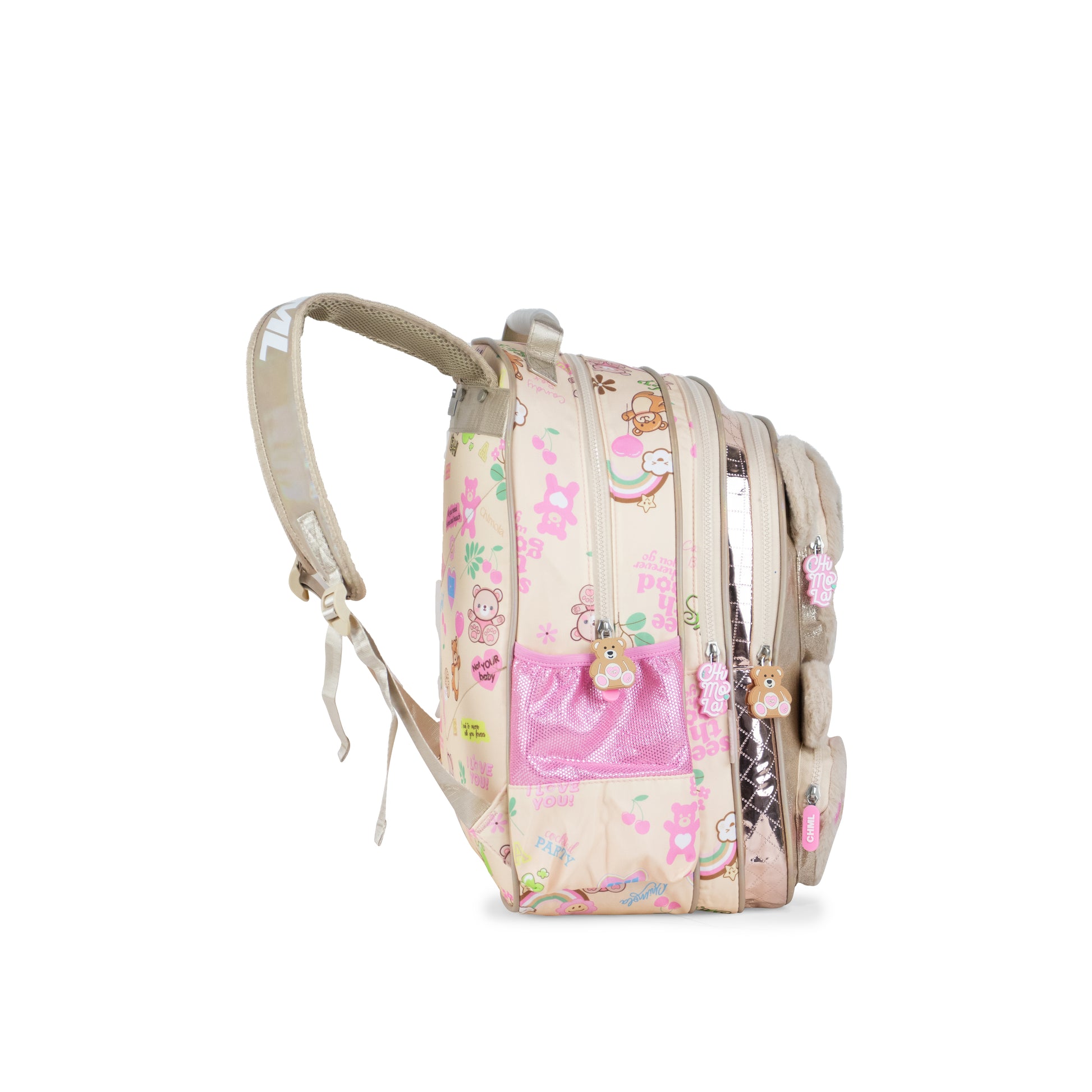 MM031 ، حقيبة ظهر مدرسية للأطفال بتصميم دب، لون بيج وردي، مع جيوب متعددة