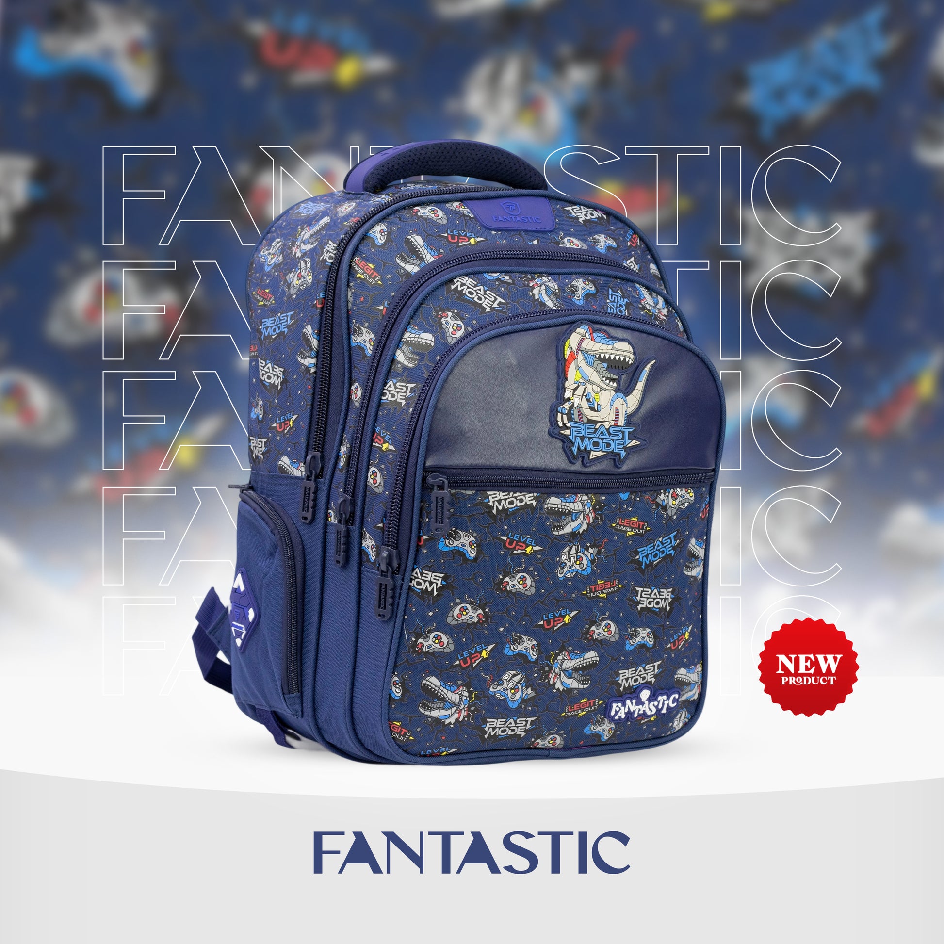 فانتاستيك حقيبة ظهر مدرسية، تصميم عصري، نمط كرتوني، لون كحلي، سحابات متعددة QY002