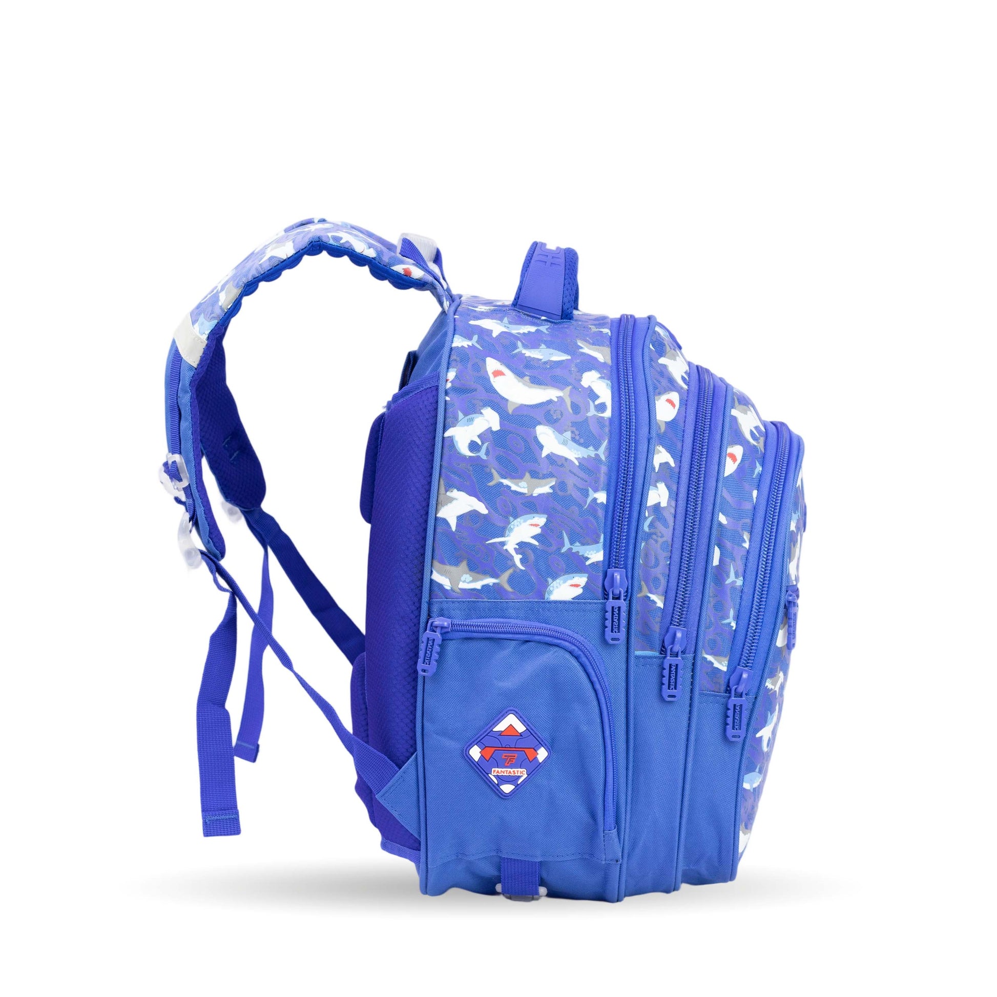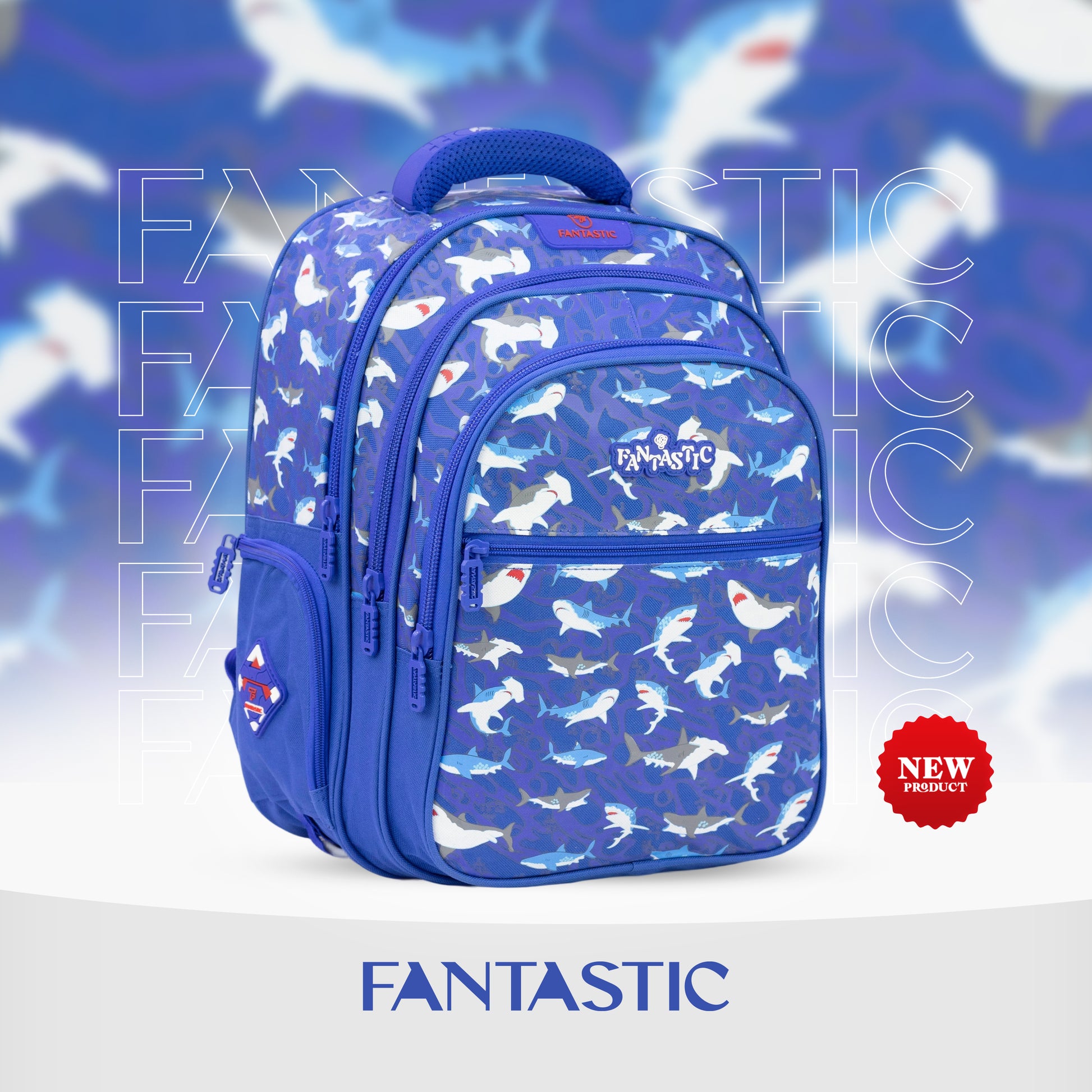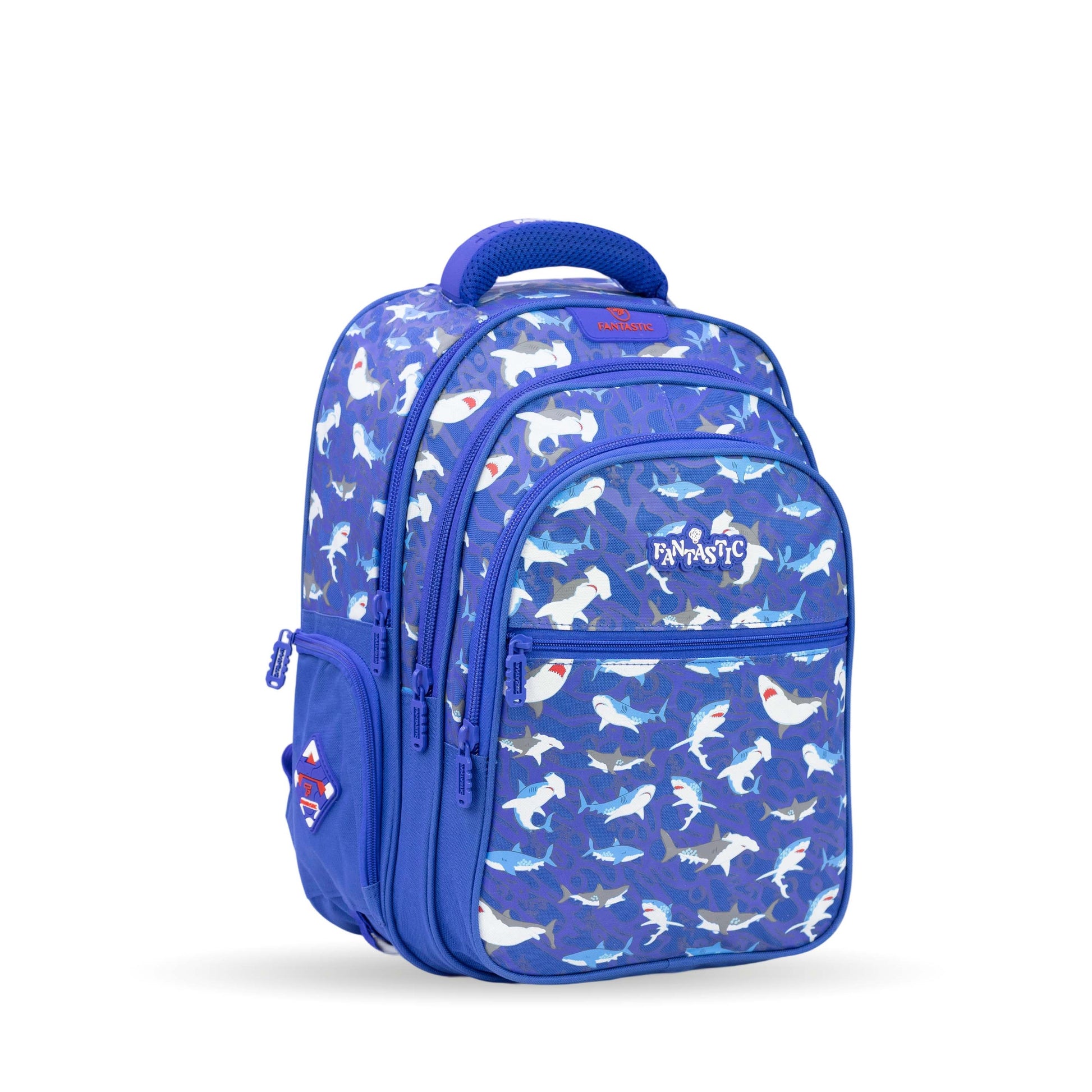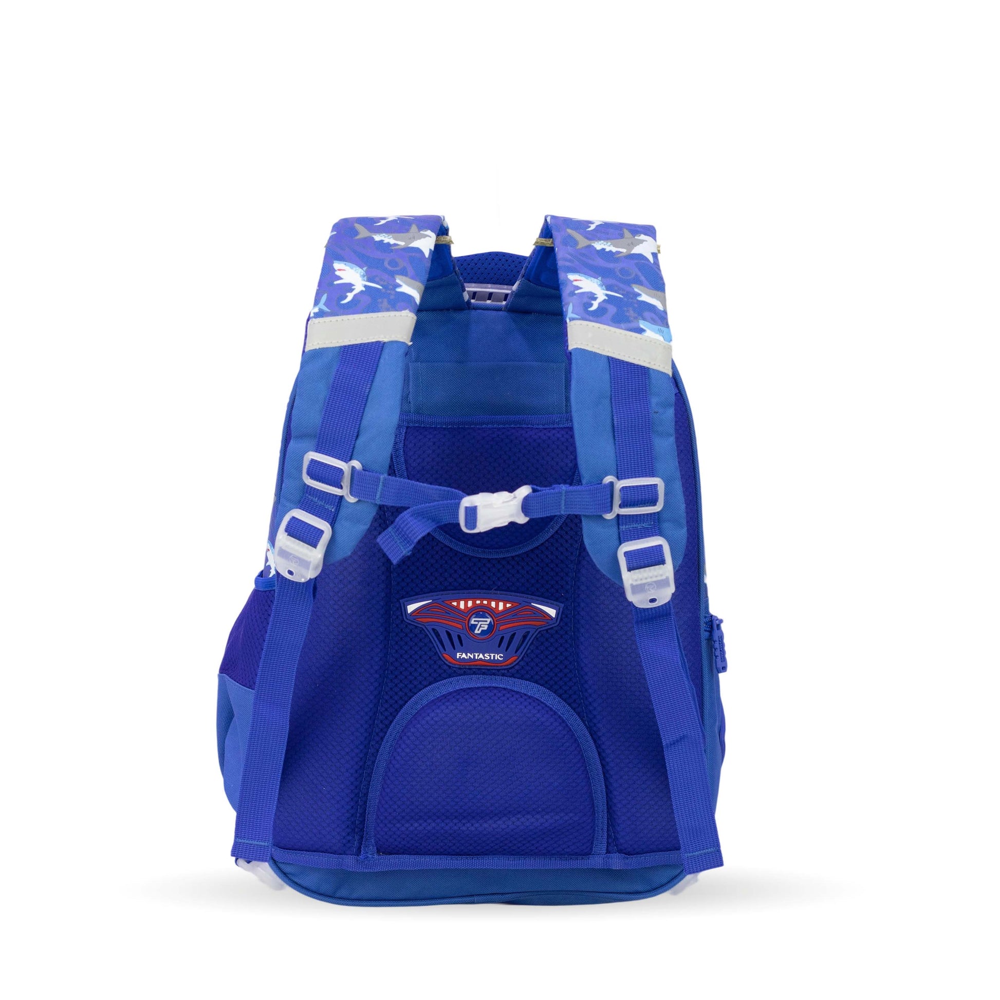 فانتاستيك حقيبة ظهر مدرسية للأطفال، نمط القرش، لون أزرق، جيوب متعددة QY002