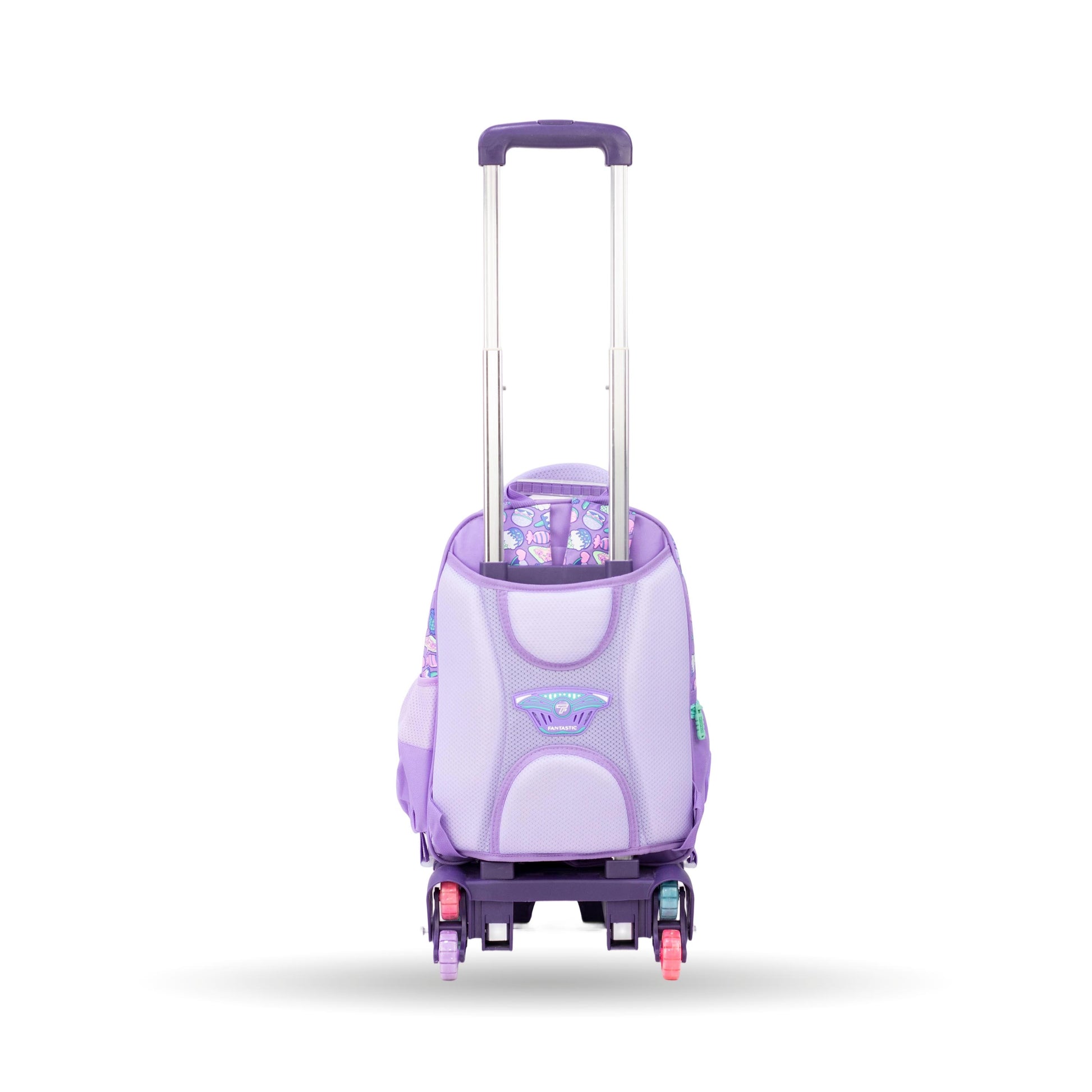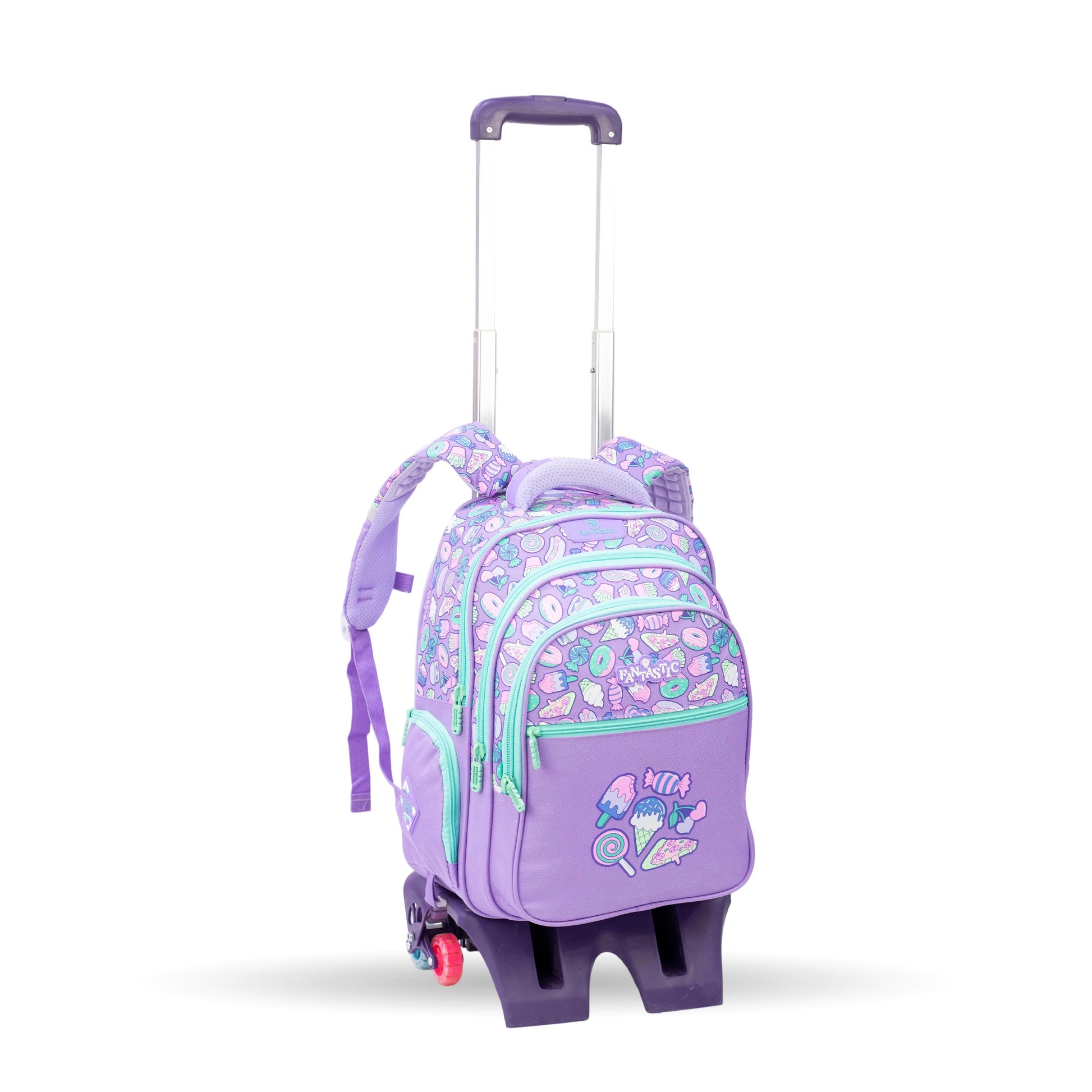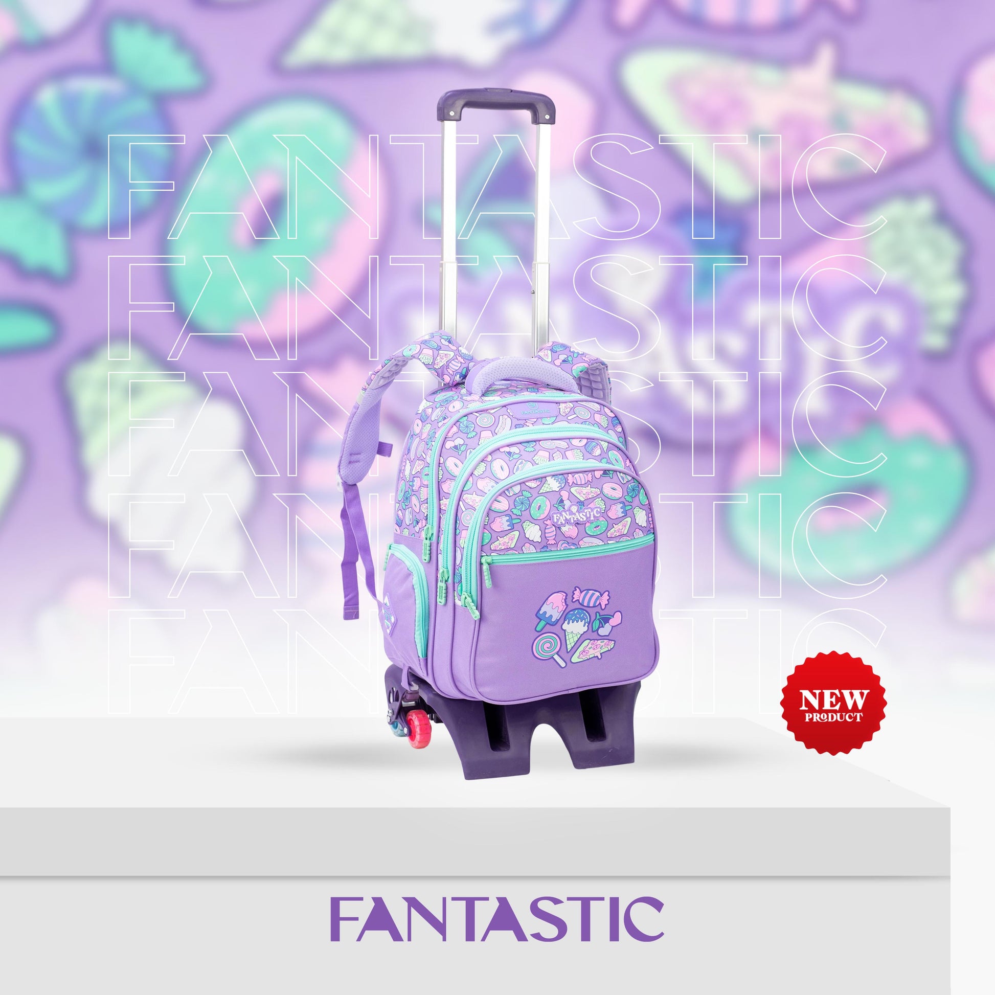 فانتاستيك حقيبة ظهر مدرسية،مع عجلات تصميم حلويات، لون بنفسجي مع أزرق فاتح، سحابات متعددة QY002T
