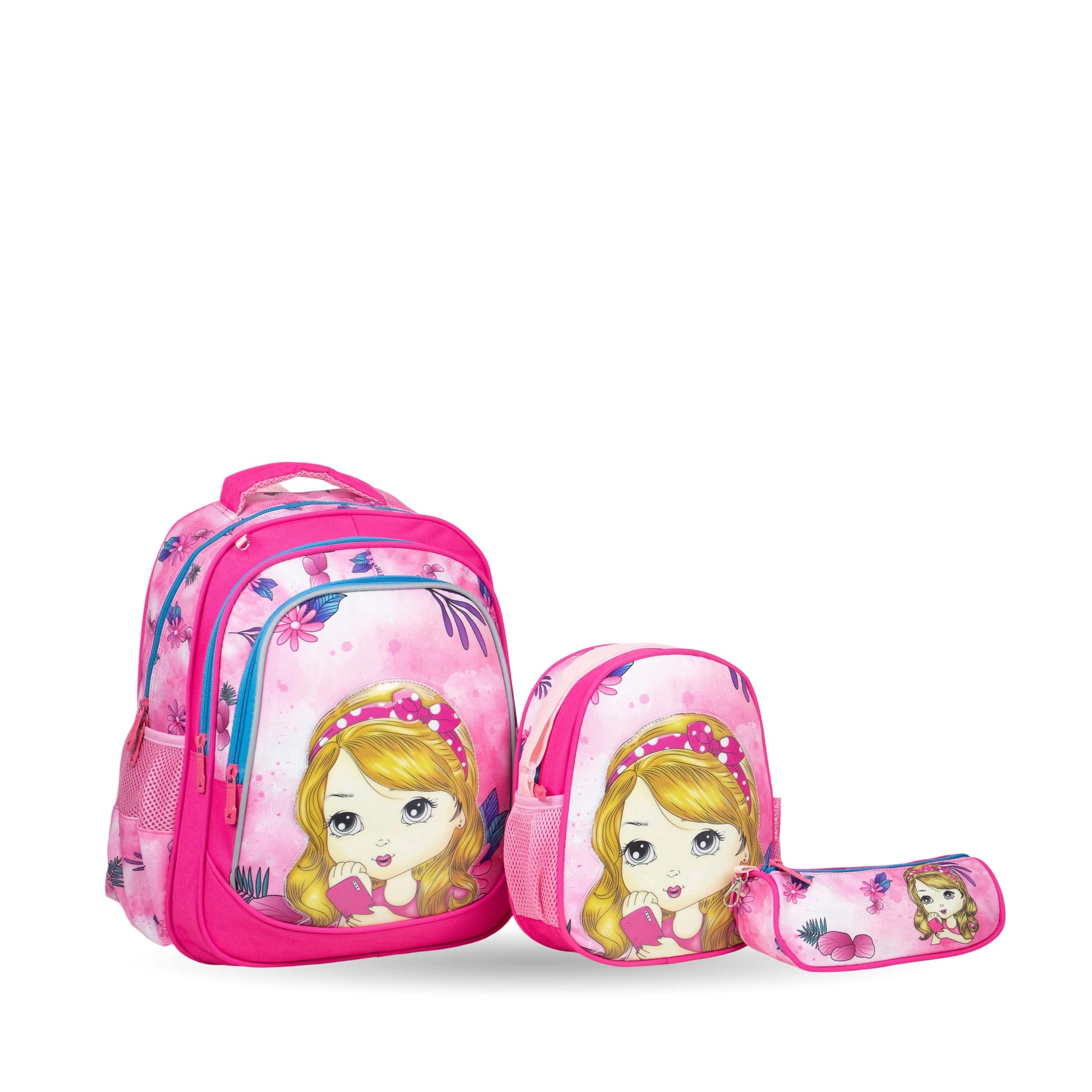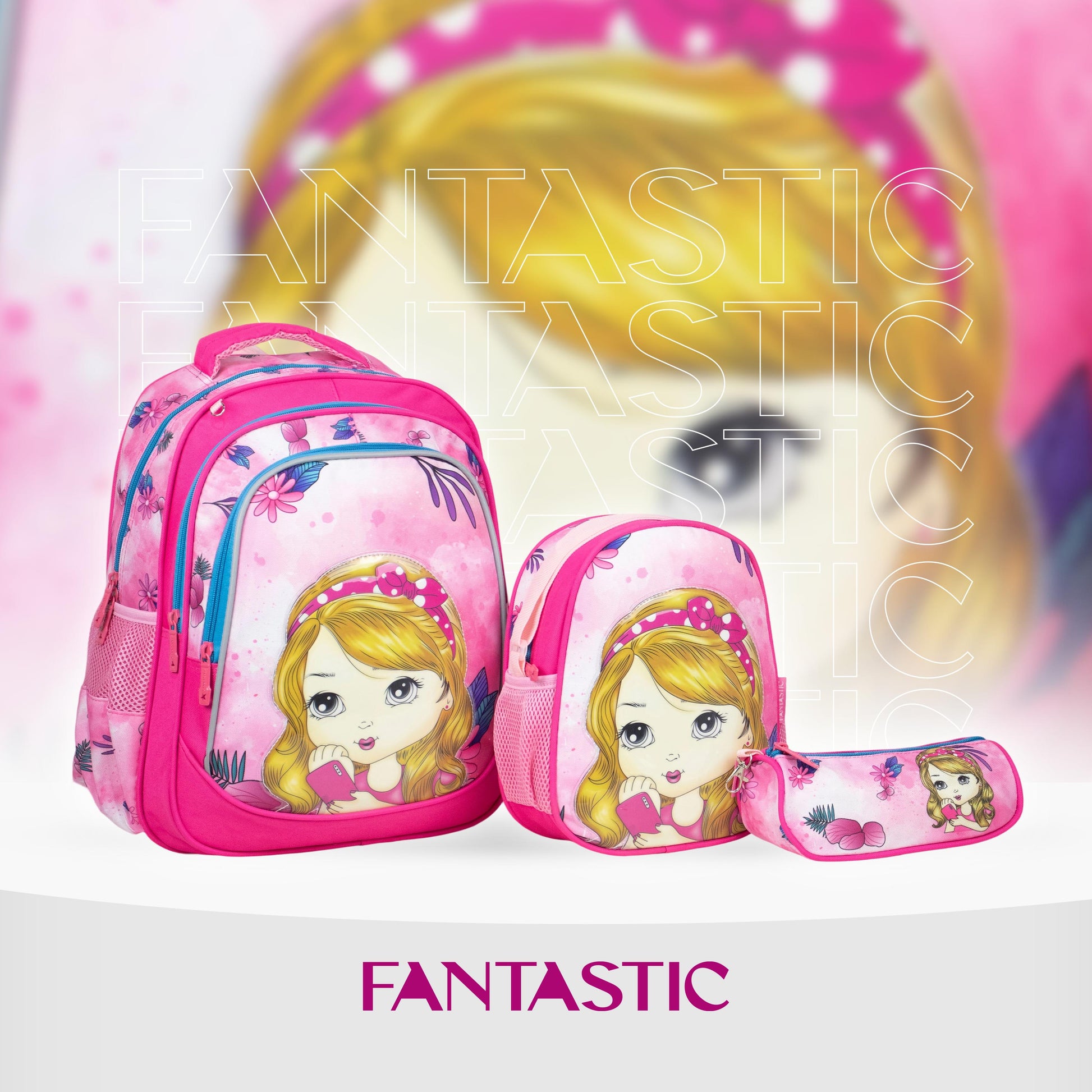 فانتاستيك، طقم شنط مدرسية للبنات، ٣ قطع، تصميم جذاب باللون الوردي