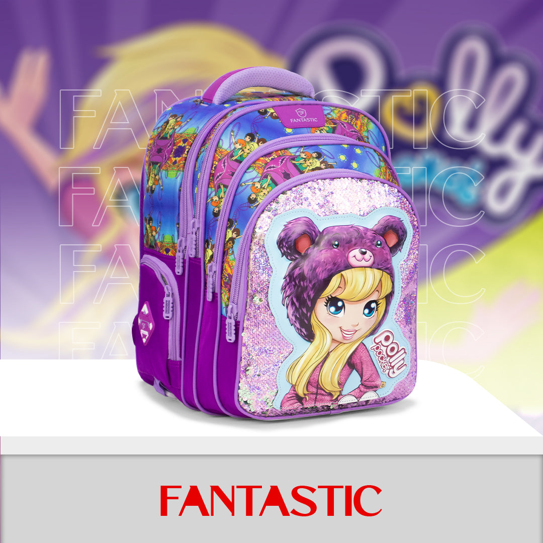 QY011 حقيبة ظهر مدرسية فانتاستيك، تصميم كرتوني، ٣ حجرات، 16 بوصة، بنفسجي، مقاومة للماء