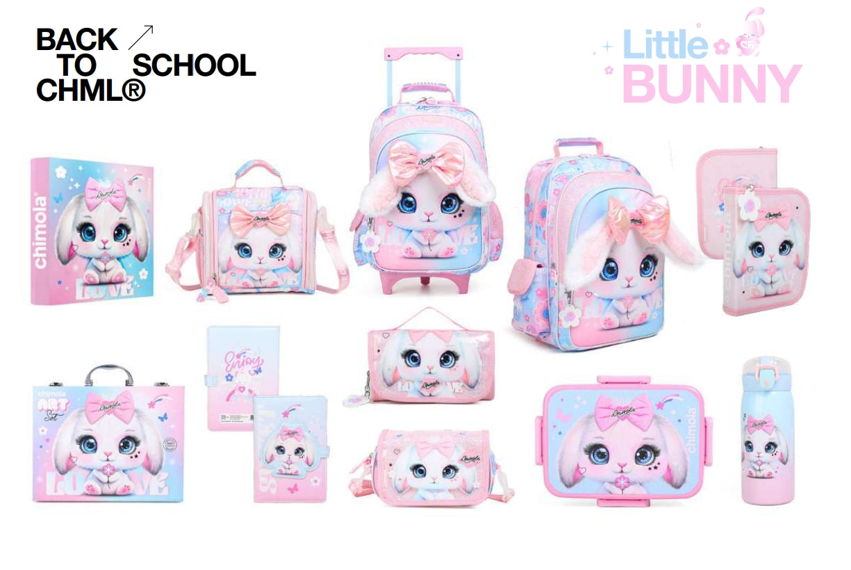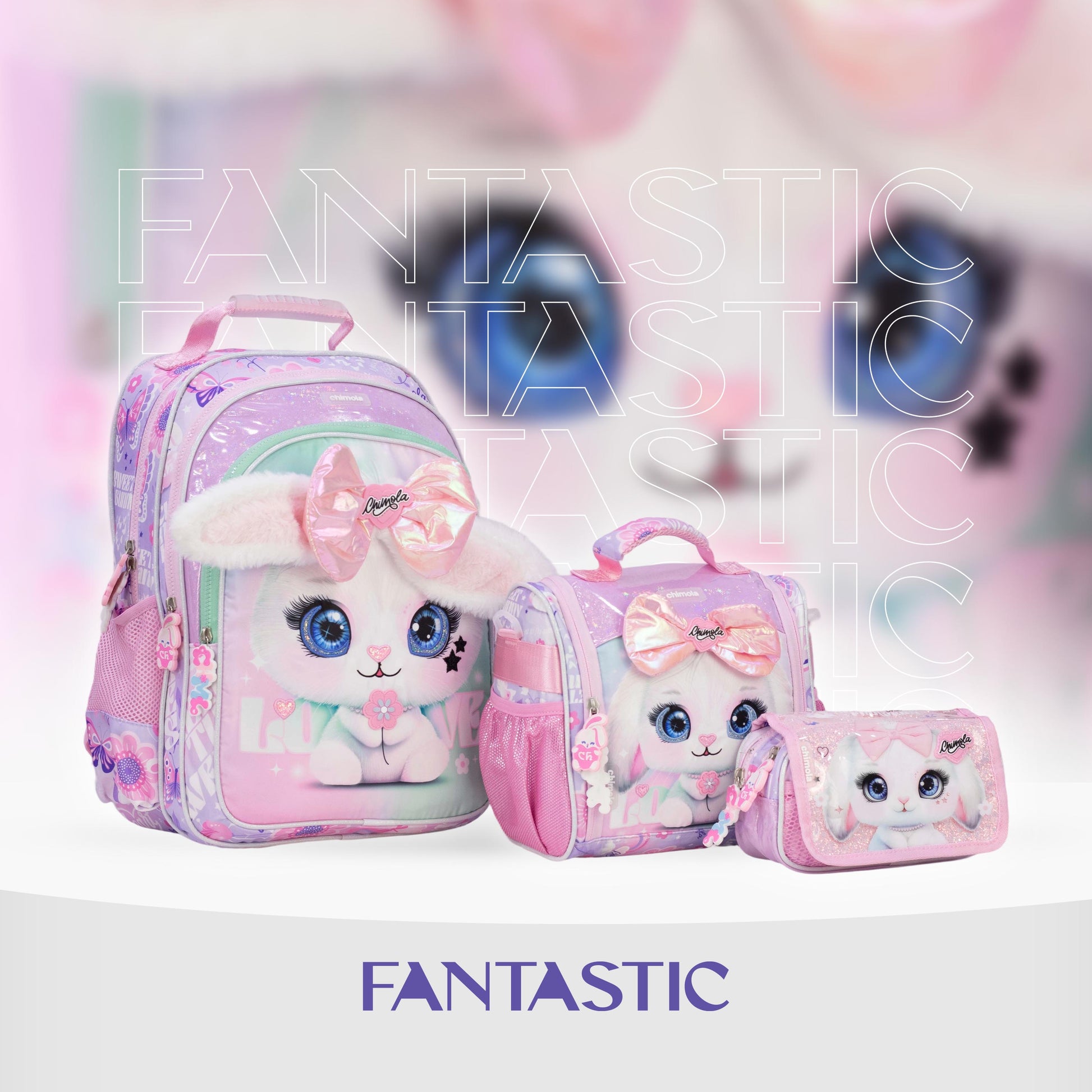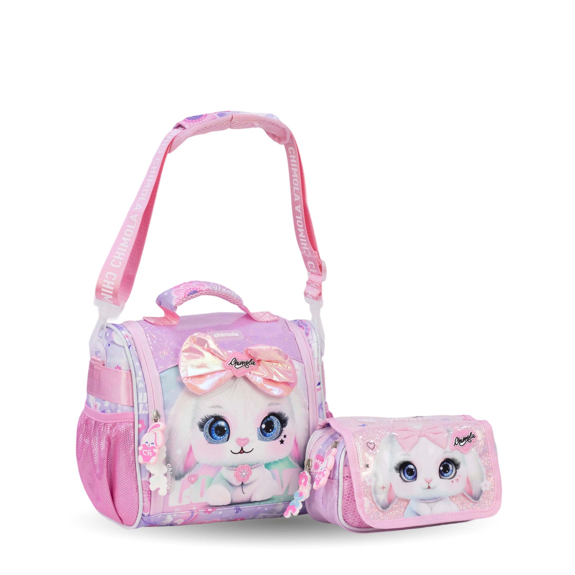 MM030 CHIMOLA ، طقم حقائب مدرسية للبنات، حقيبة ظهر مع حقيبة طعام ومقلمة، تصميم زهور وفراشات باللون الوردي والبنفسجي