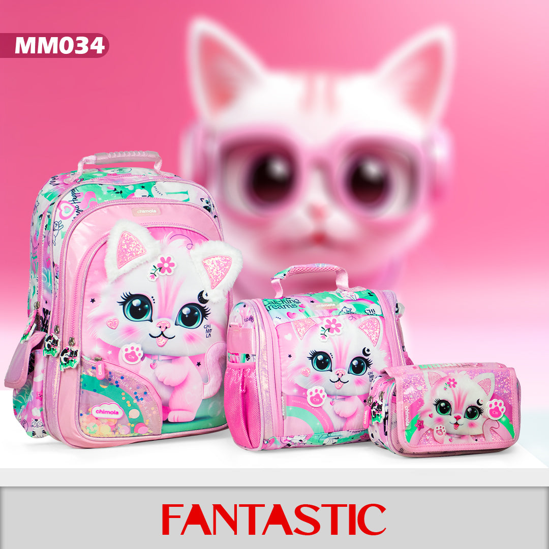 امنحي طفلكِ لمسة من المرح والأناقة مع مجموعة حقائب الأطفال MM034 بتصميم قطة جذاب. تأتي هذه المجموعة بثلاث قطع بألوان وردي ومنت تناسب جميع احتياجات طفلك اليومية، من المدرسة إلى الرحلات الصغيرة. مصممة بعناية لتوفير الراحة والمتانة، تجعل هذه الحقائب خيارًا مثاليًا لتنظيم أغراض طفلك بطريقة مرحة وعملية. اجعلي كل يوم لطفلك مليئًا بالبهجة مع هذه المجموعة الرائعة.