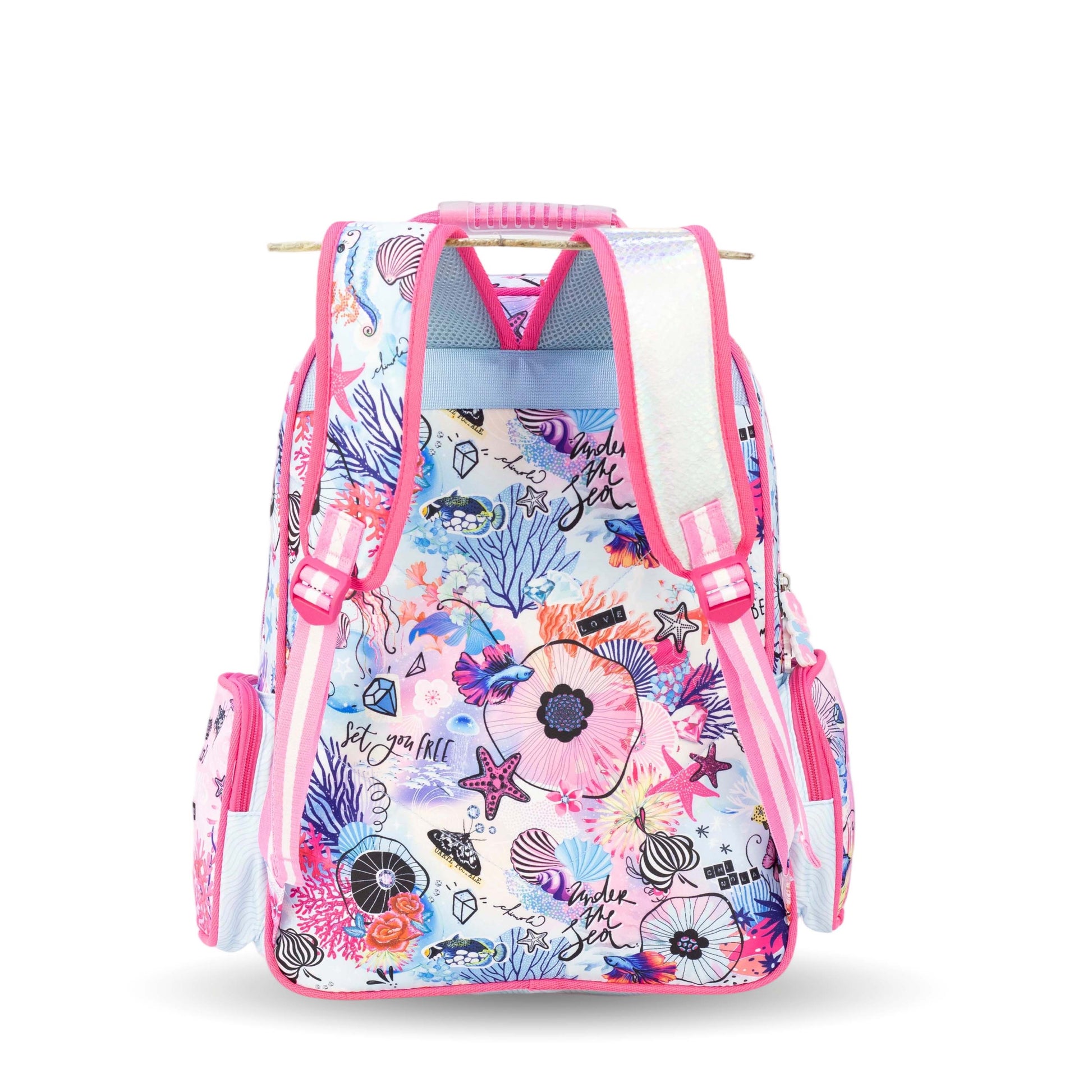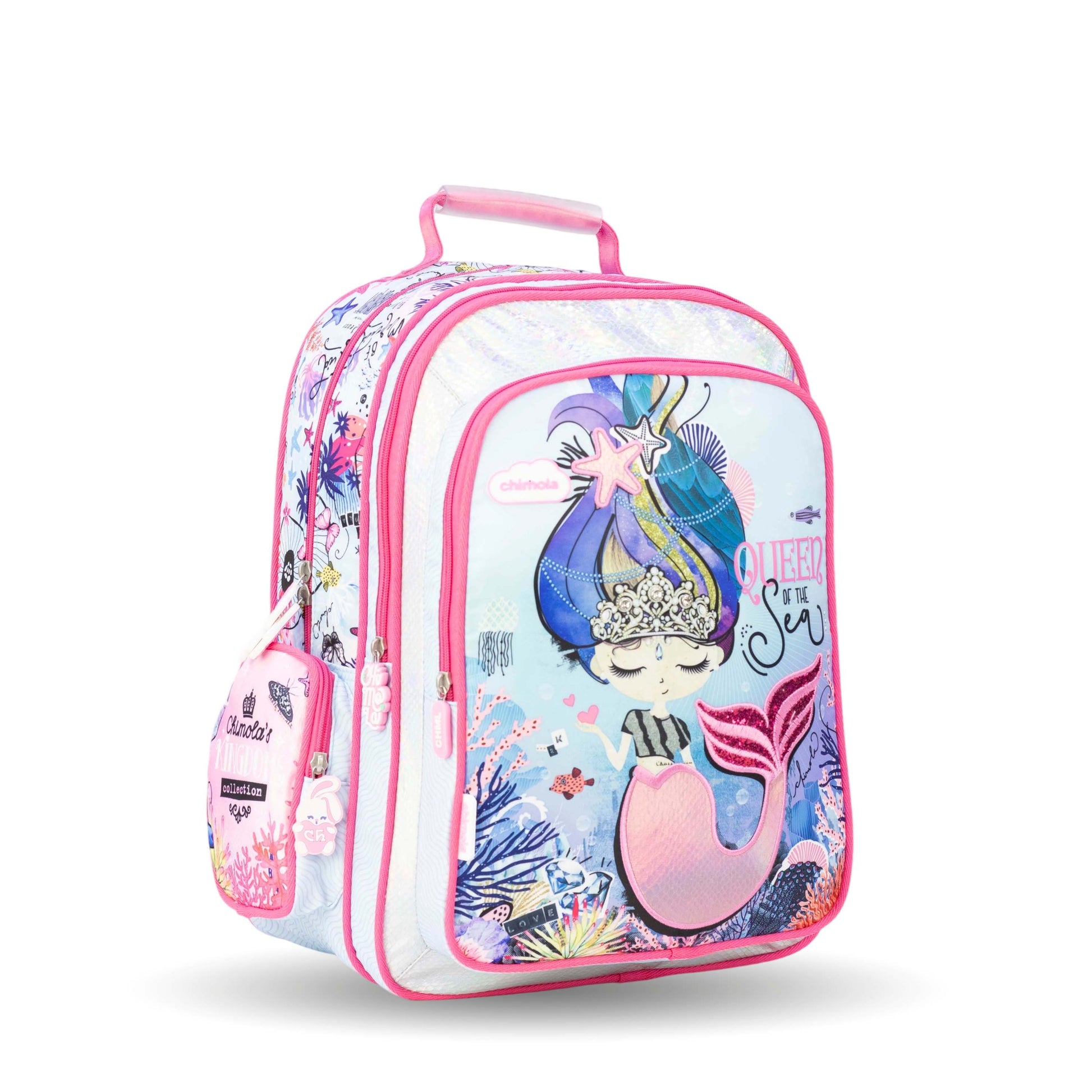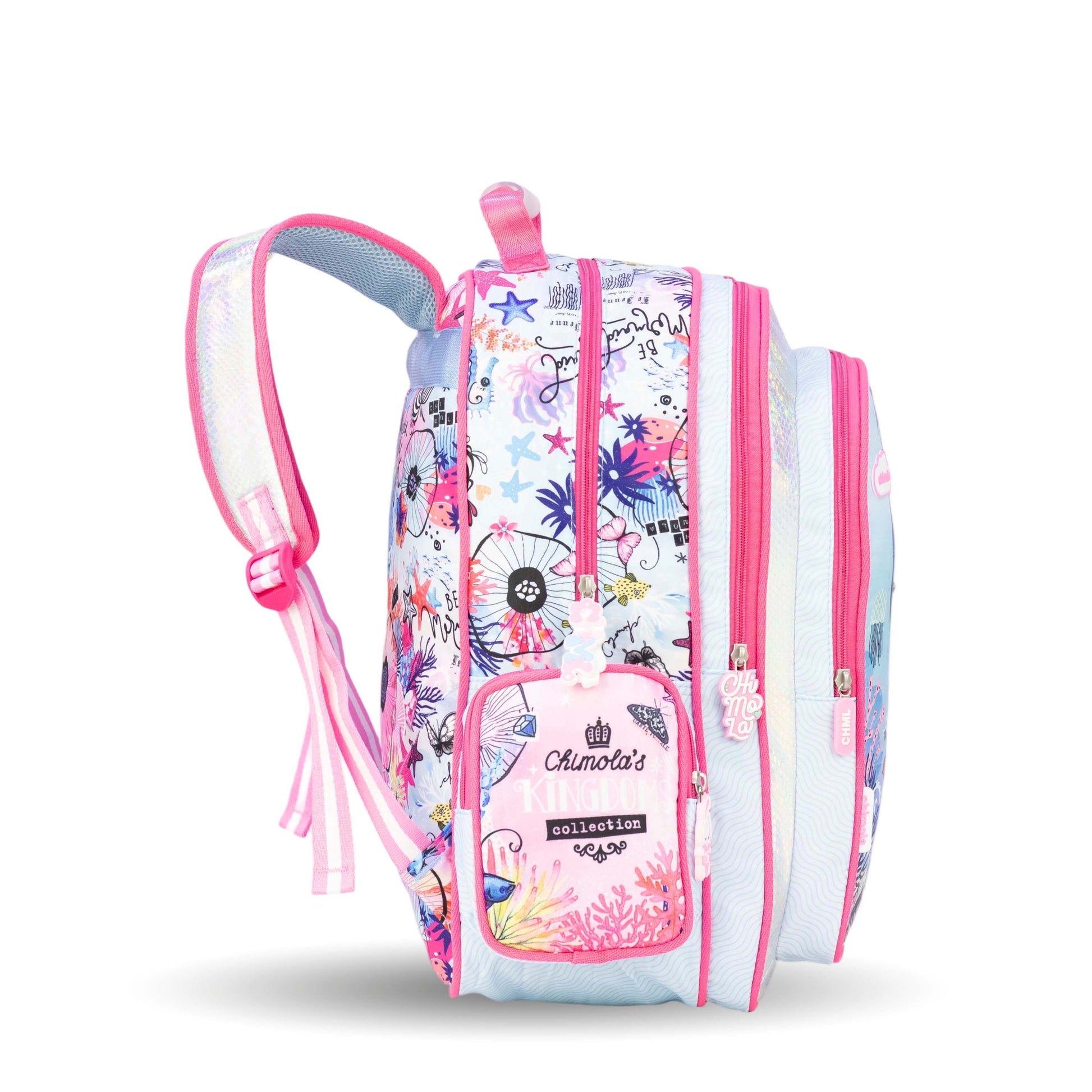 MM043 تشيمولا حقيبة ظهر مدرسية للأطفال، تصميم حورية البحر، نمط بحري باللون الوردي والأزرق