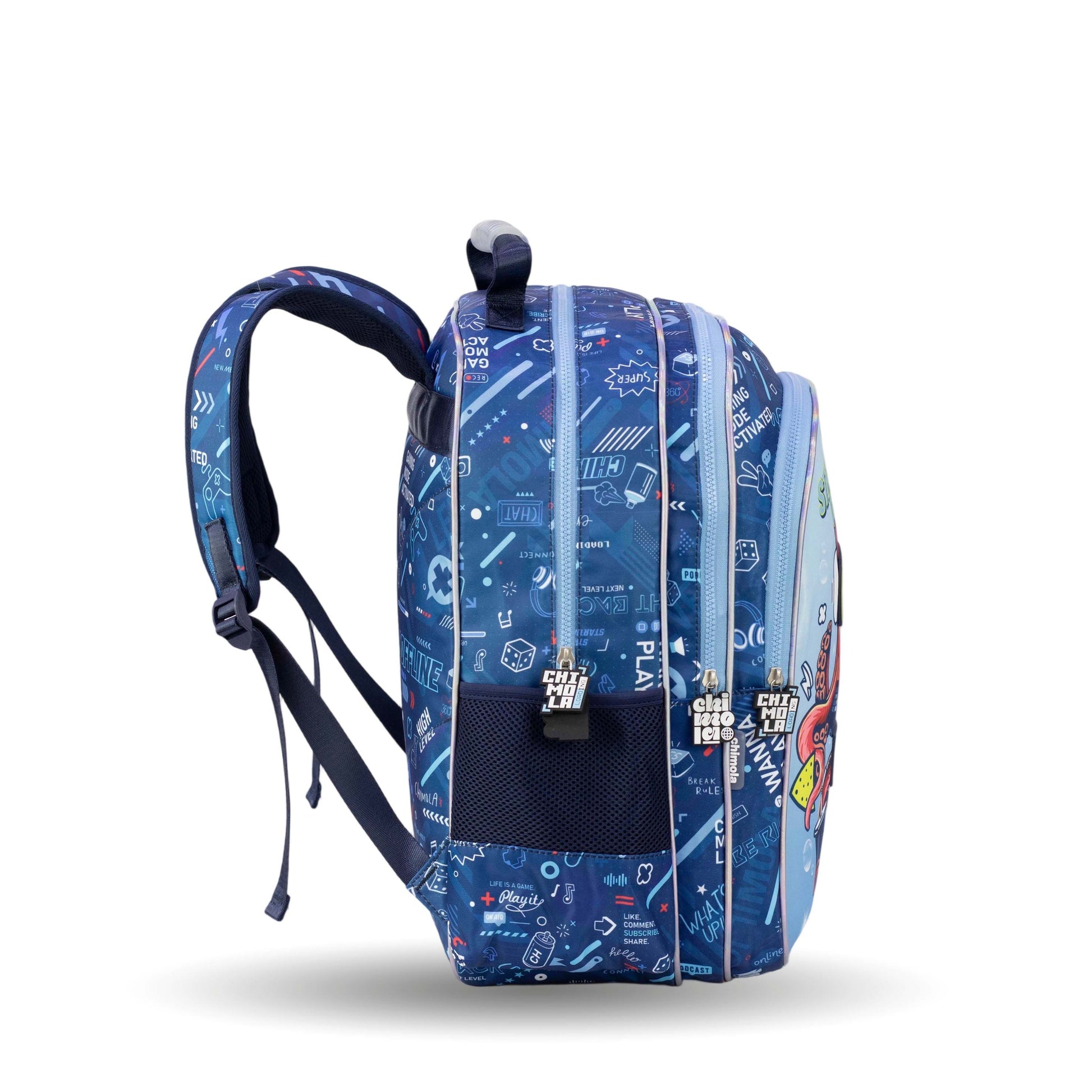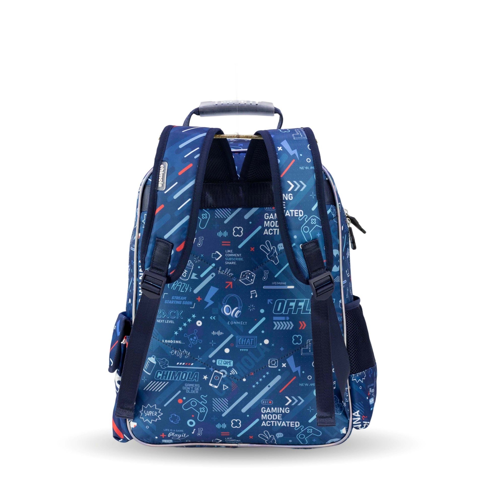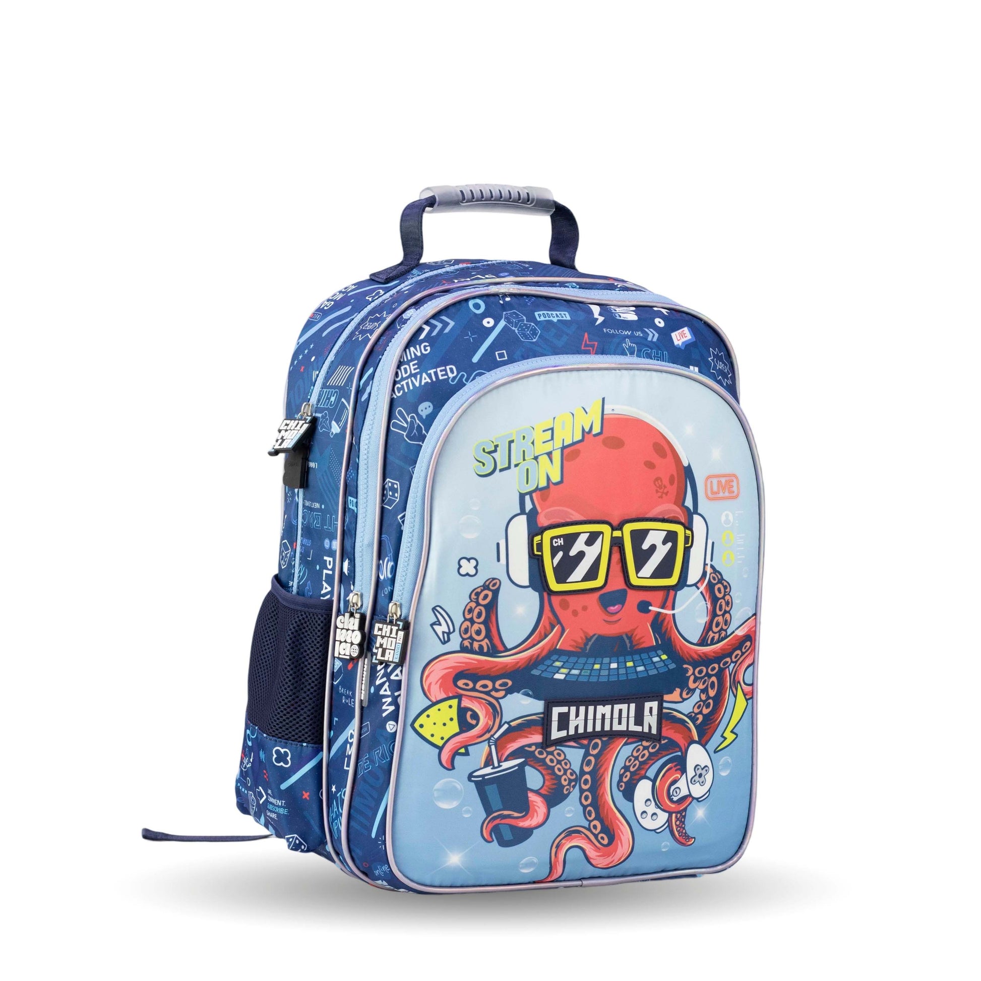 MM050 شيمولا حقيبة ظهر مدرسية، تصميم جيمنج مع طباعة أخطبوط، لون أزرق، متعددة الجيوب