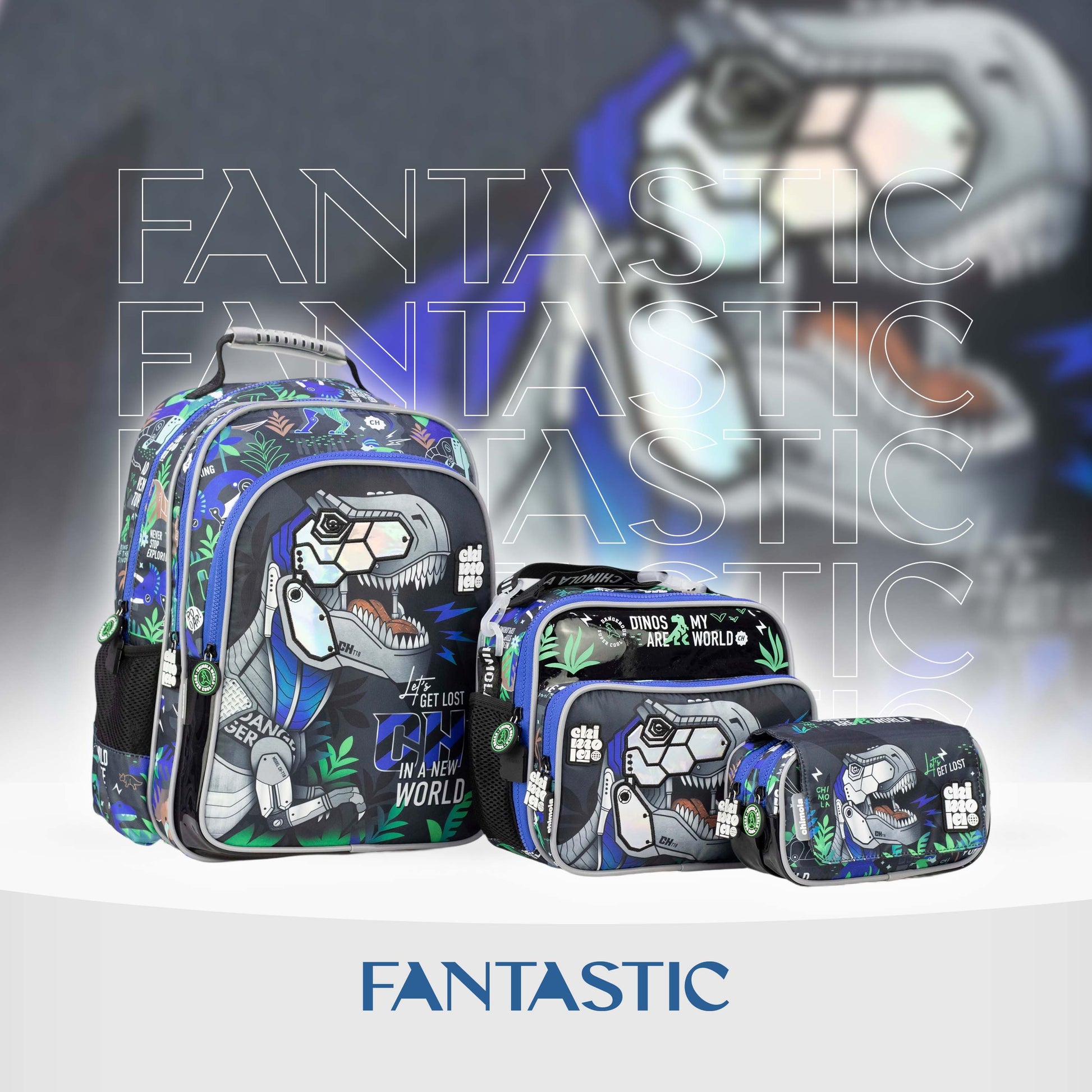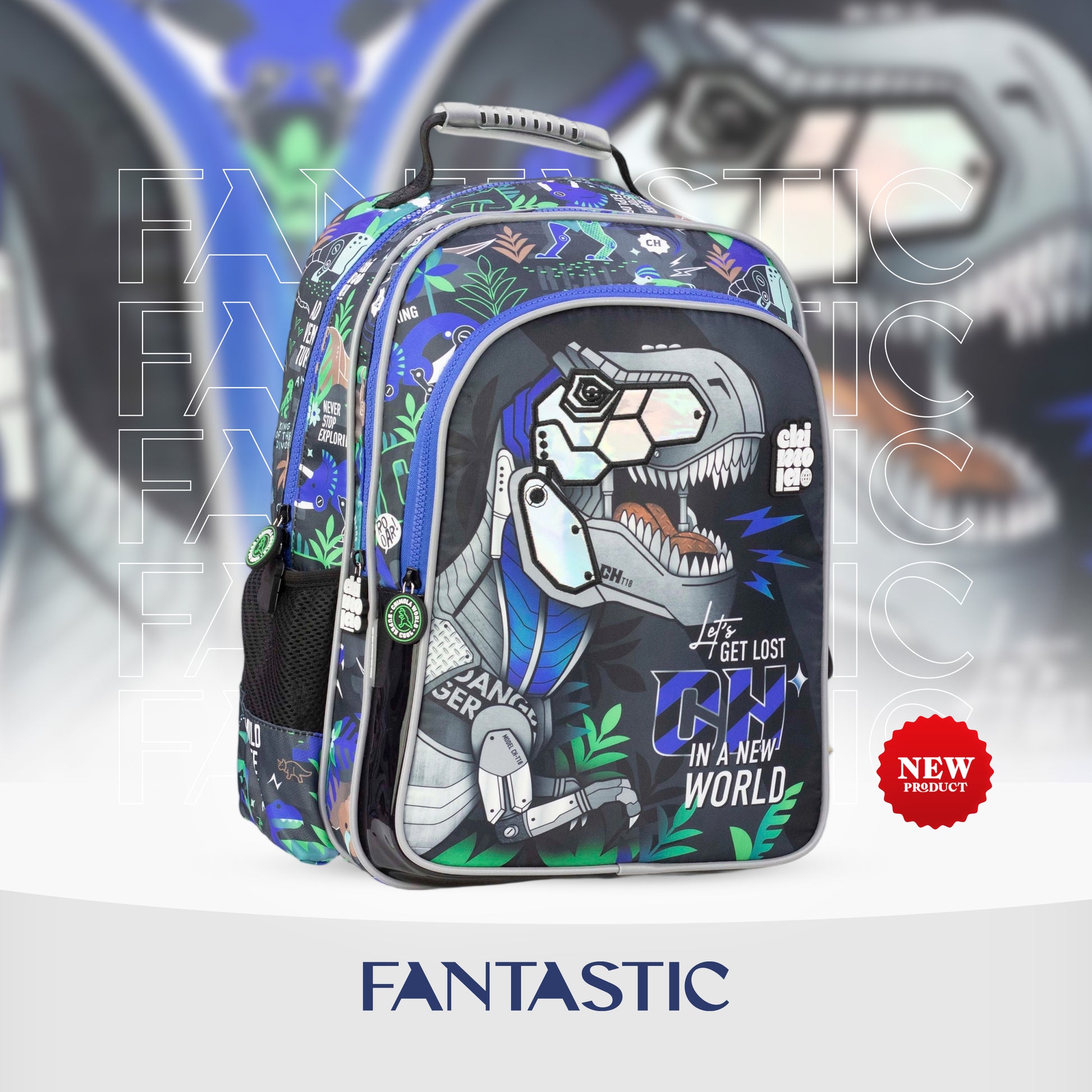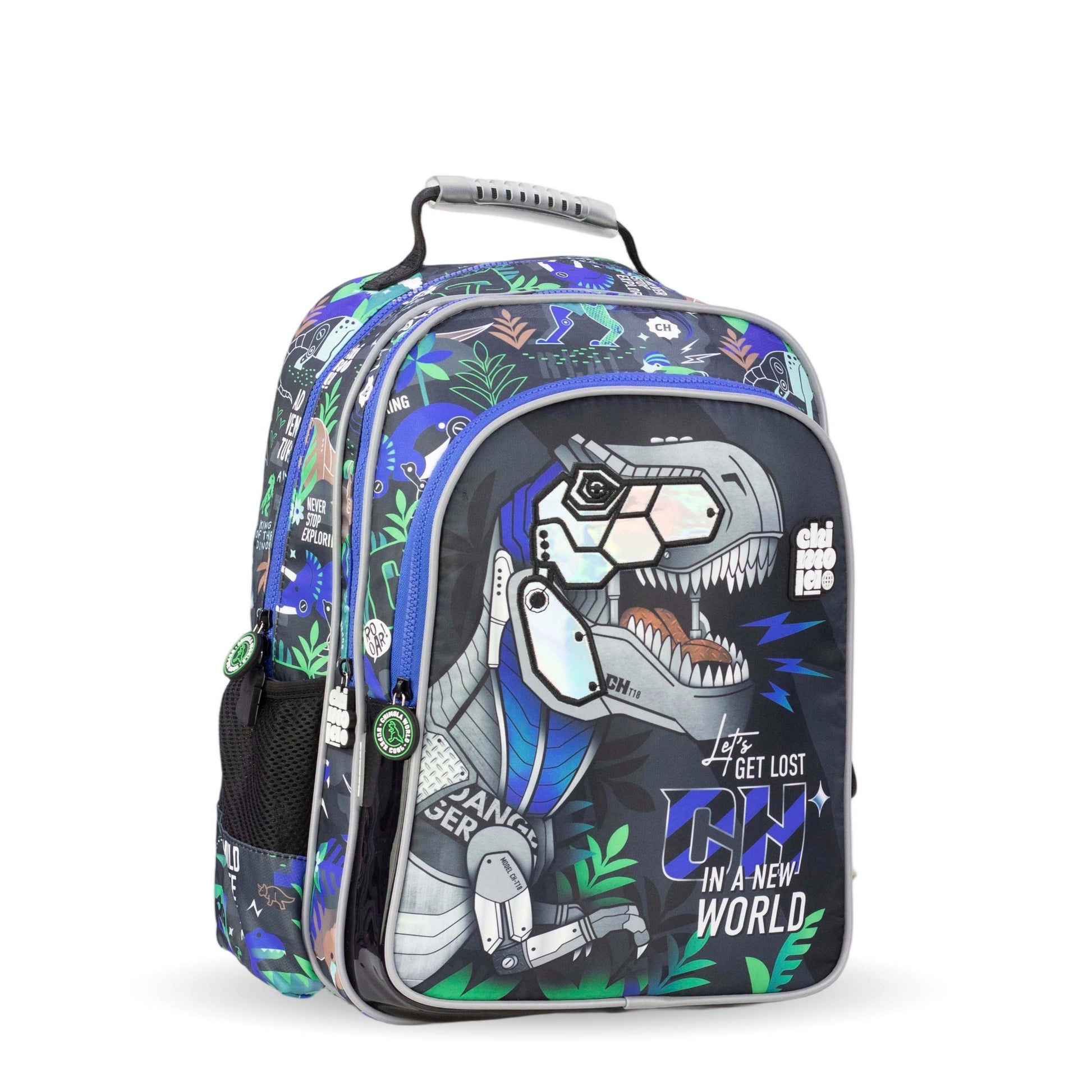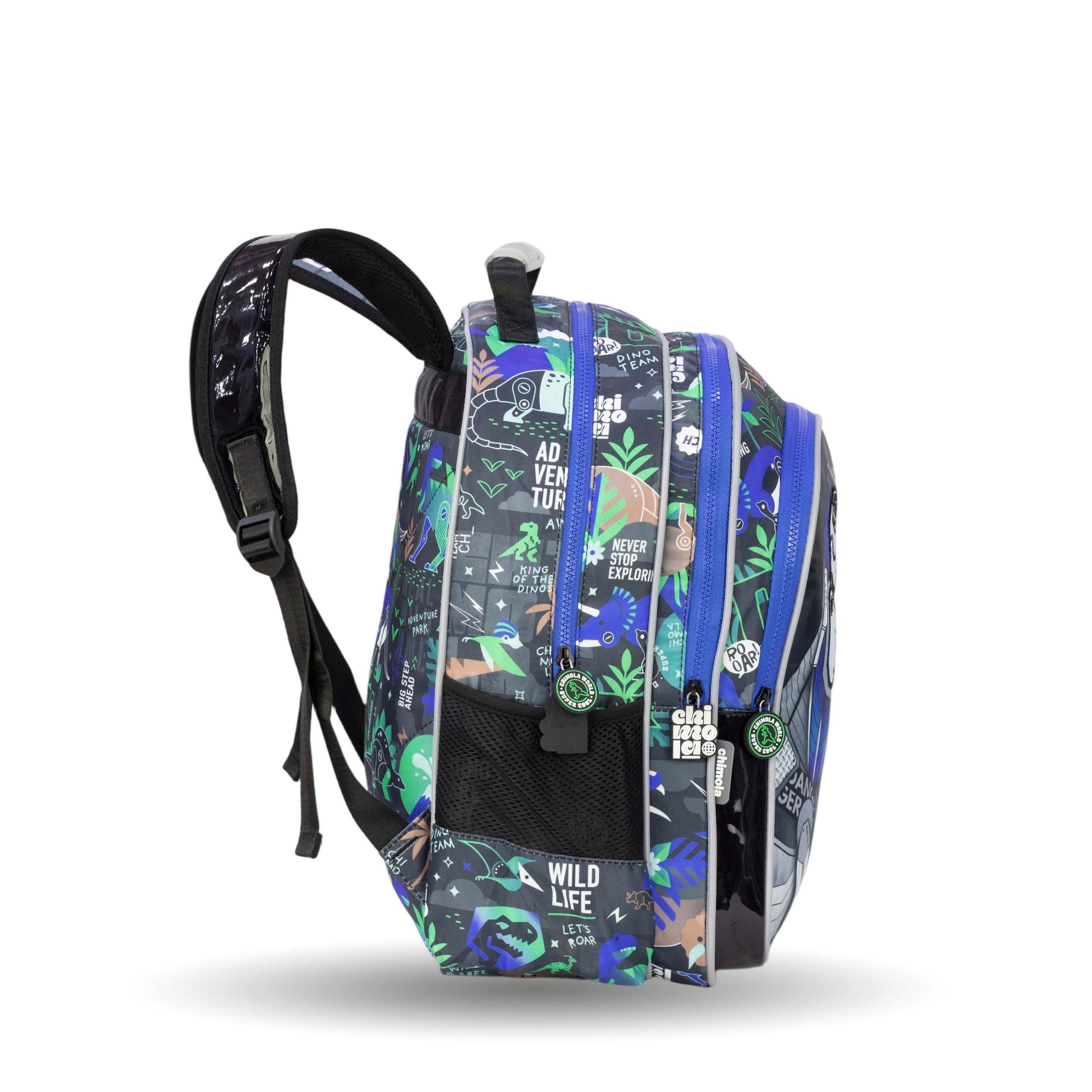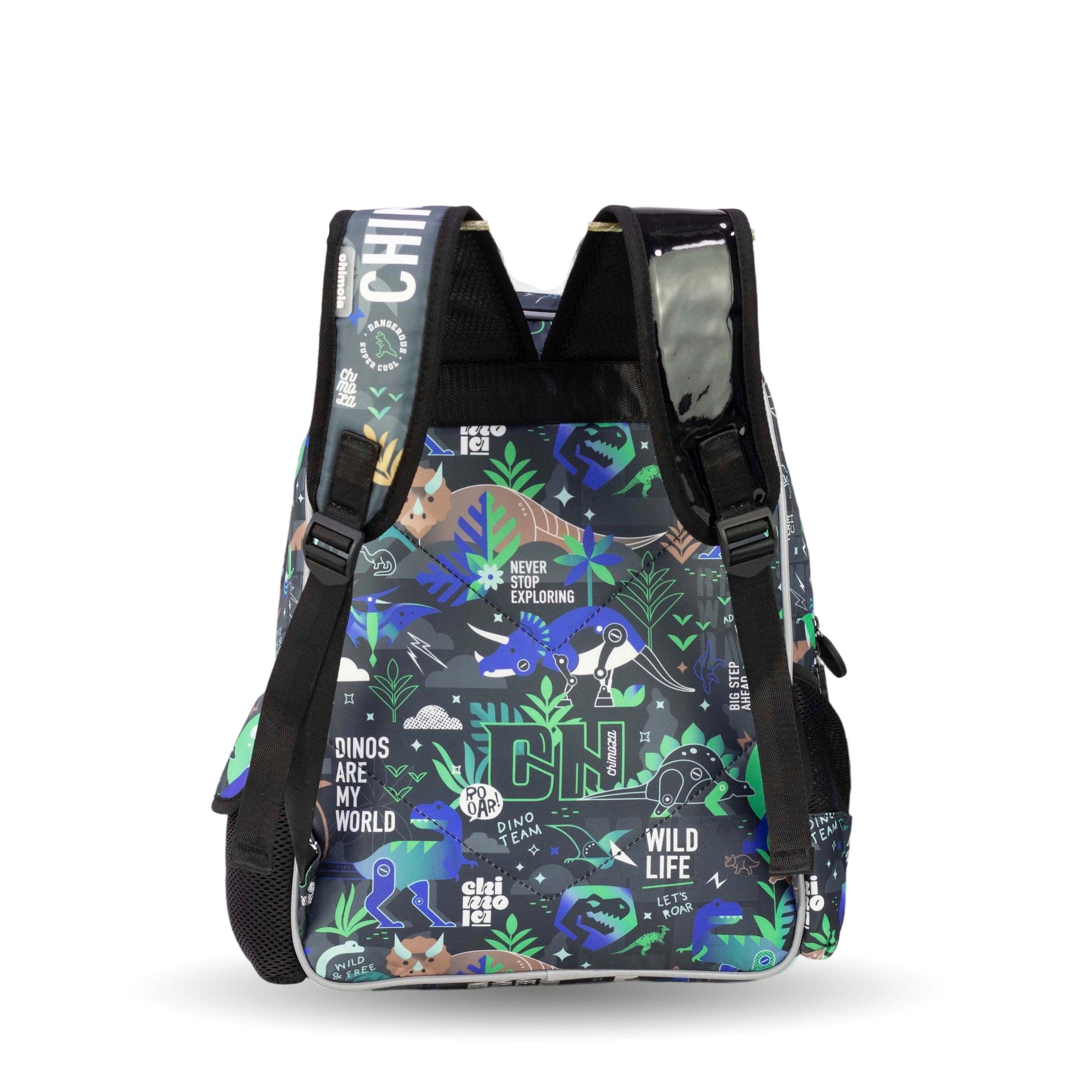 حقيبة الظهر المدرسية Chimola MM056 بتصميم ديناصور جذاب تجمع بين الأناقة والعملية. تأتي مع حقيبة طعام ومقلمة متناسقة، مما يسهل تنظيم مستلزمات المدرسة اليومية. ألوانها الأزرق والأخضر تضفي حيوية وشبابية، بينما توفر مساحة واسعة ومريحة لحمل الكتب والأدوات. خيار مثالي لطفلك ليبدأ يومه الدراسي بنشاط وثقة. مقاس 16 بوص