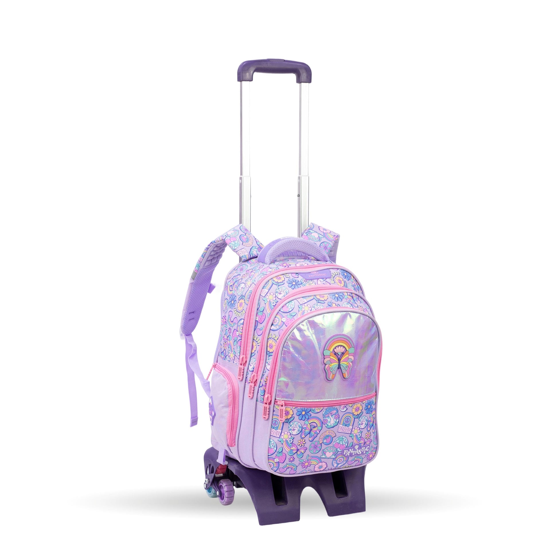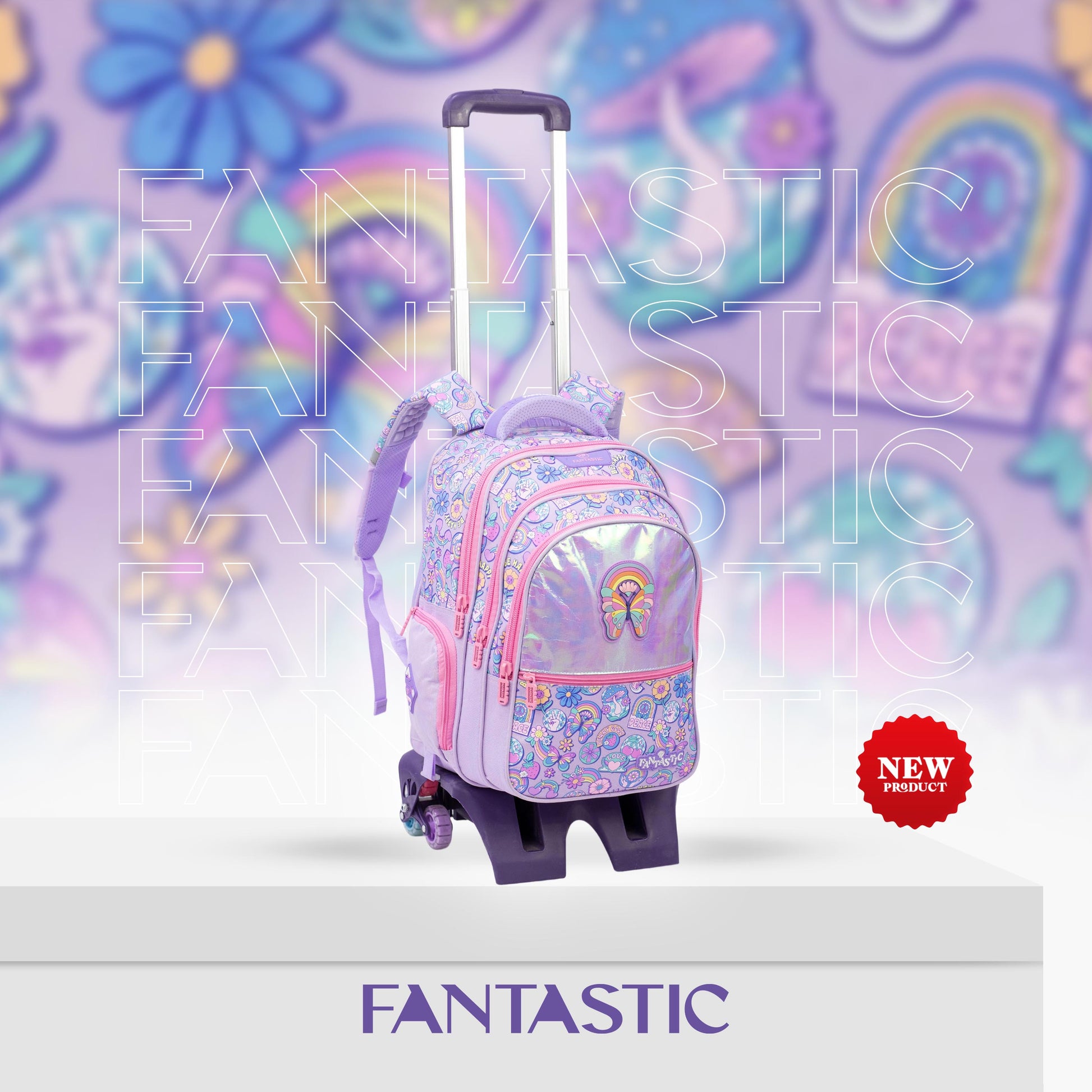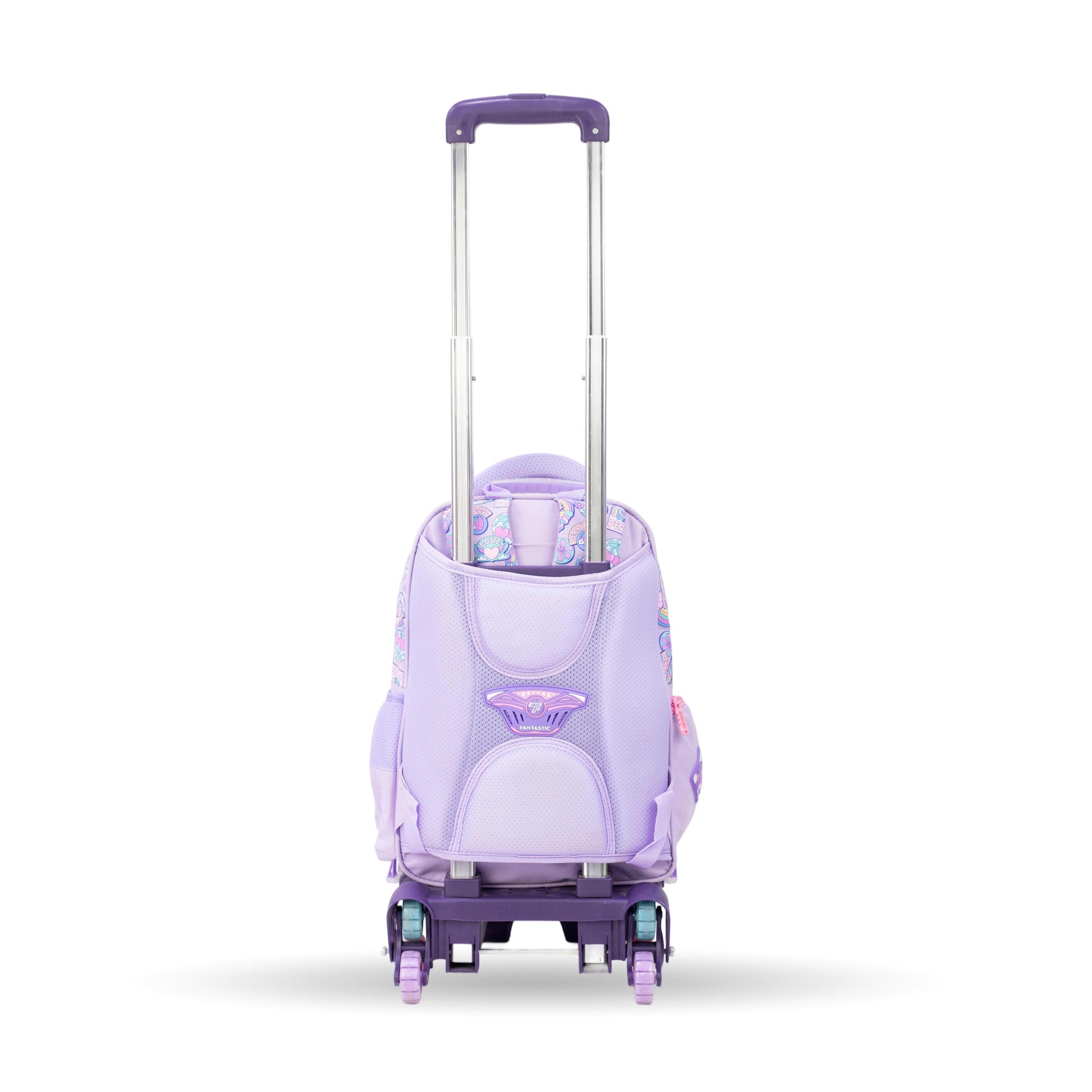 QY001T حقيبة ظهر مدرسية للأطفال، تصميم حلويات وفراشات، مع عجلات، 3 حجرات، بنفسجي ووردي، 17 بوصة (Copy)