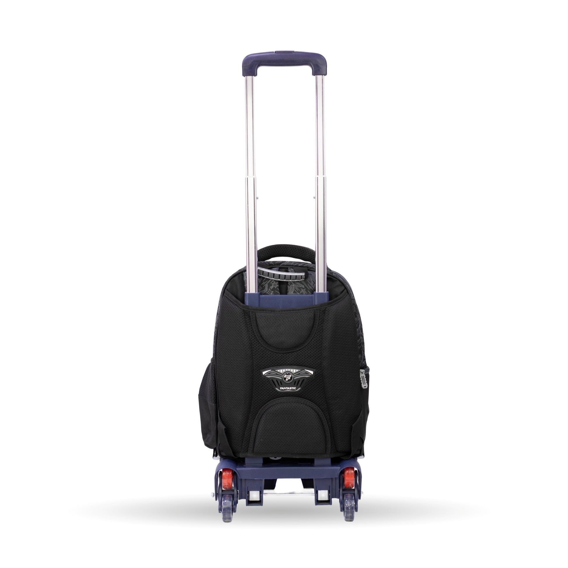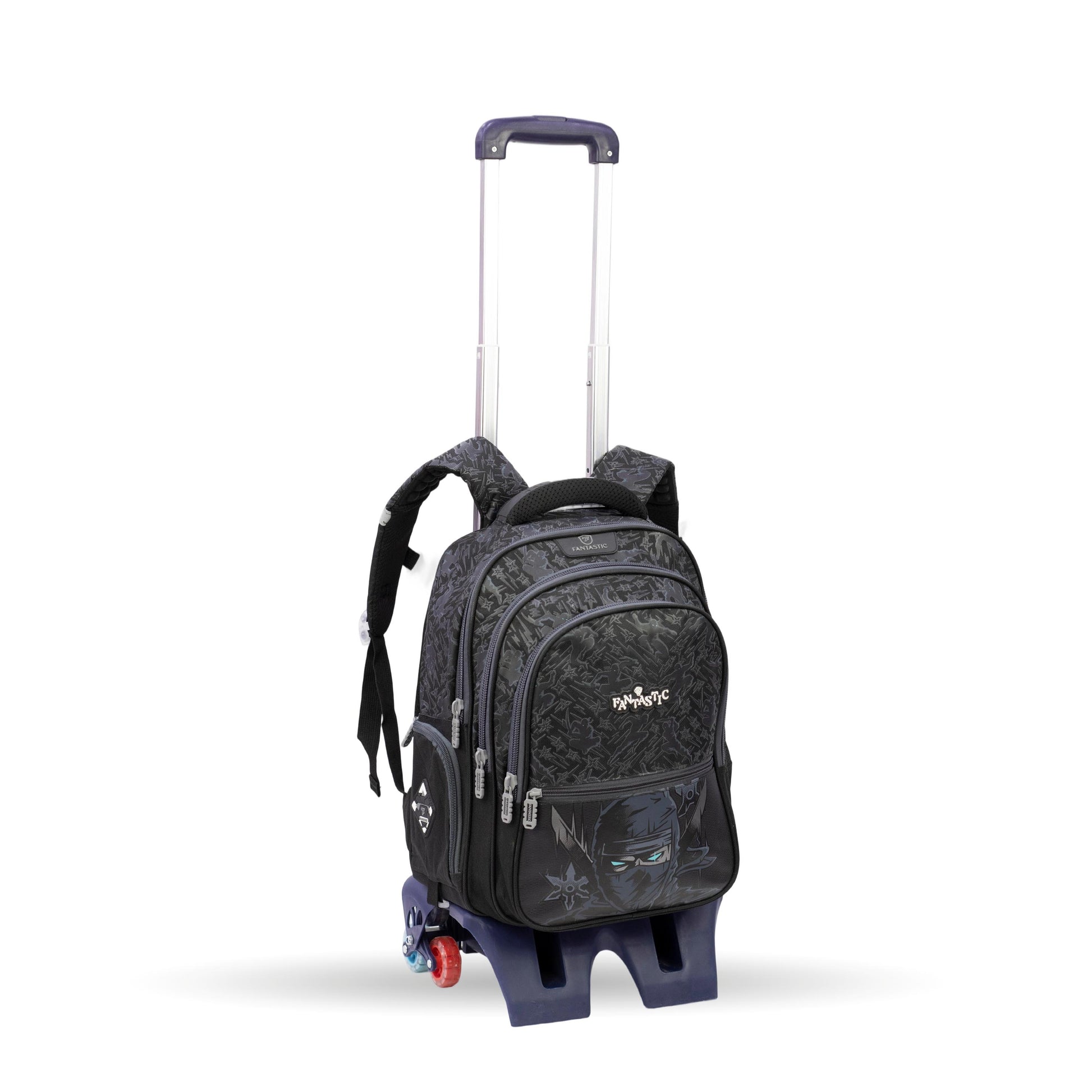 QY001T حقيبة ظهر مدرسية، ٣ حجرات، مع عجلات، تصميم عصري، أسود، 16 بوصة