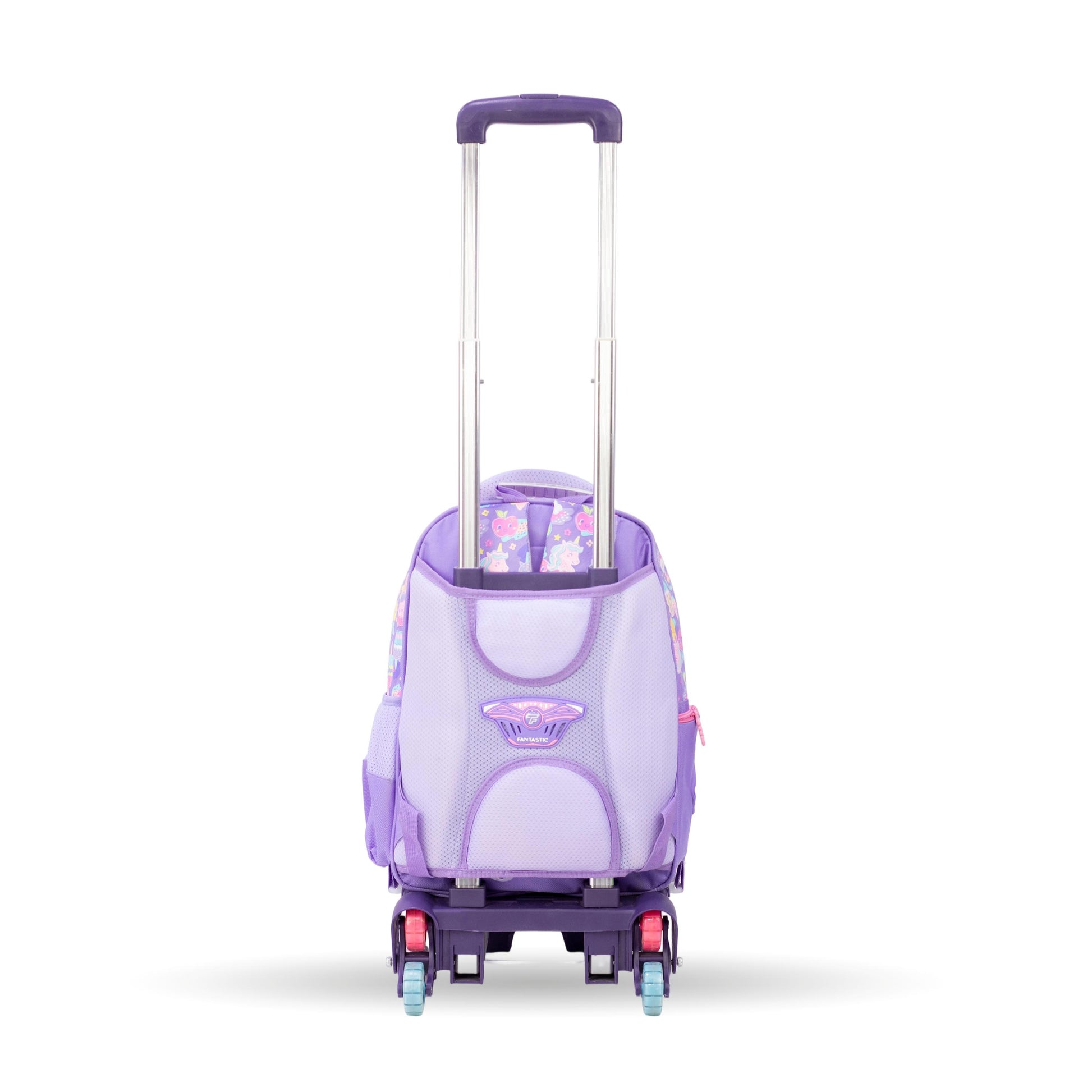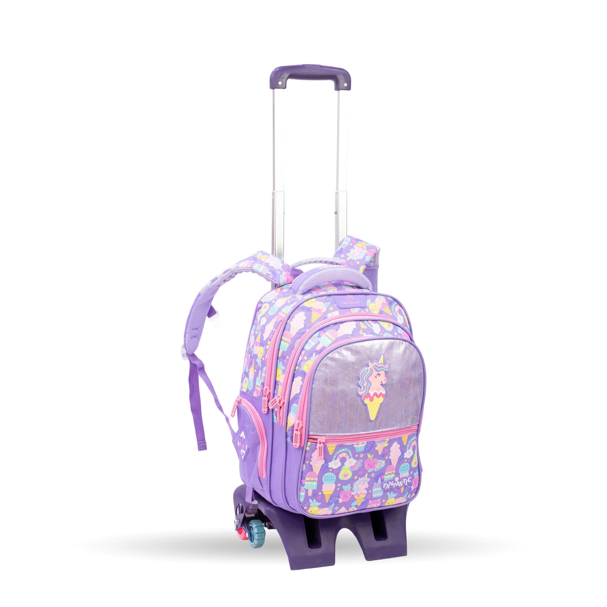 QY001T حقيبة ظهر فانتاستيك للأطفالمع عجلات مقاس 17 بوصة، تصميم يونيكورن وآيس كريم، بنفسجي وردي