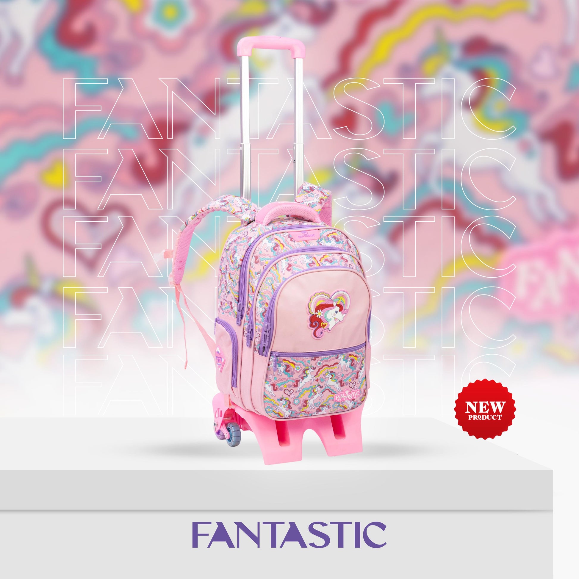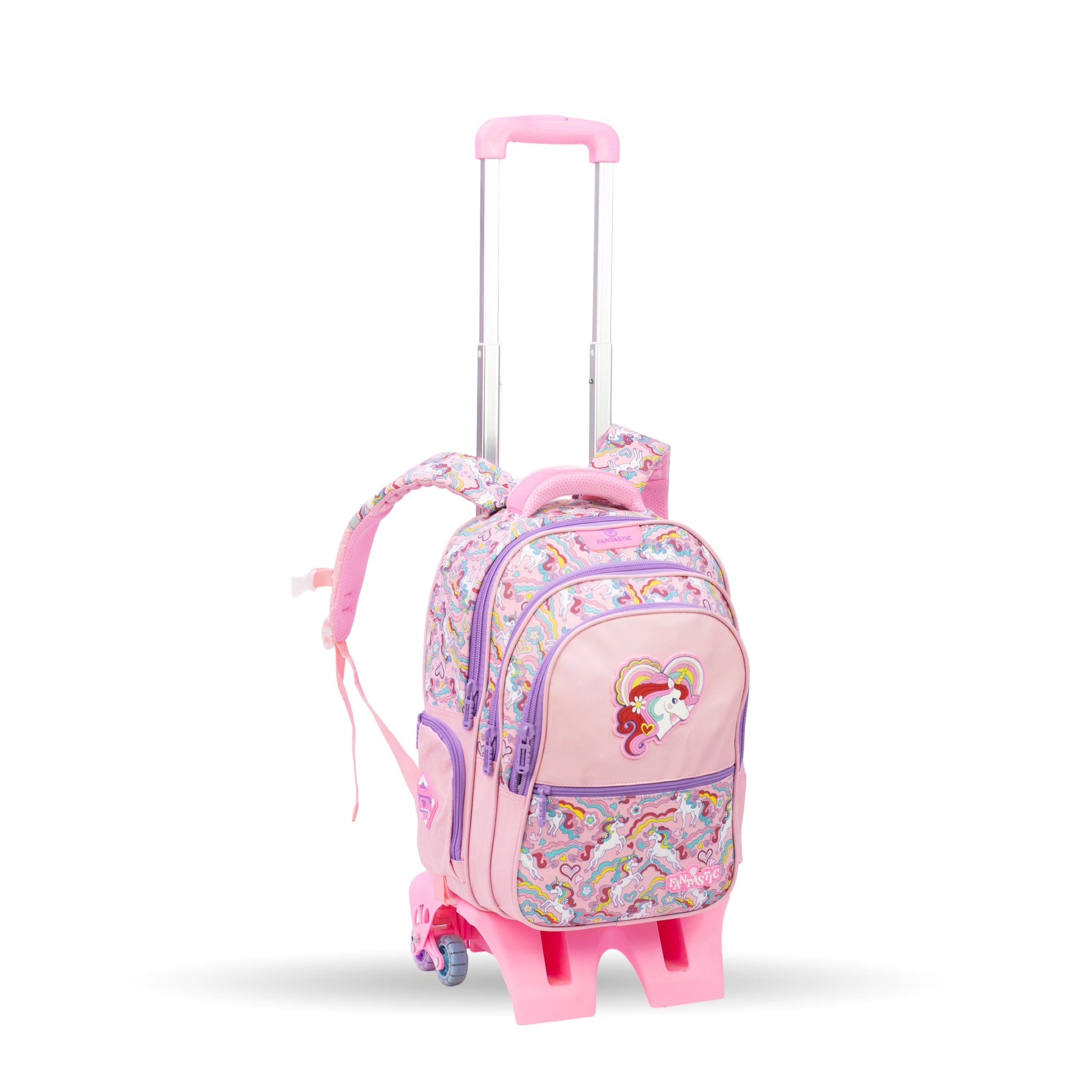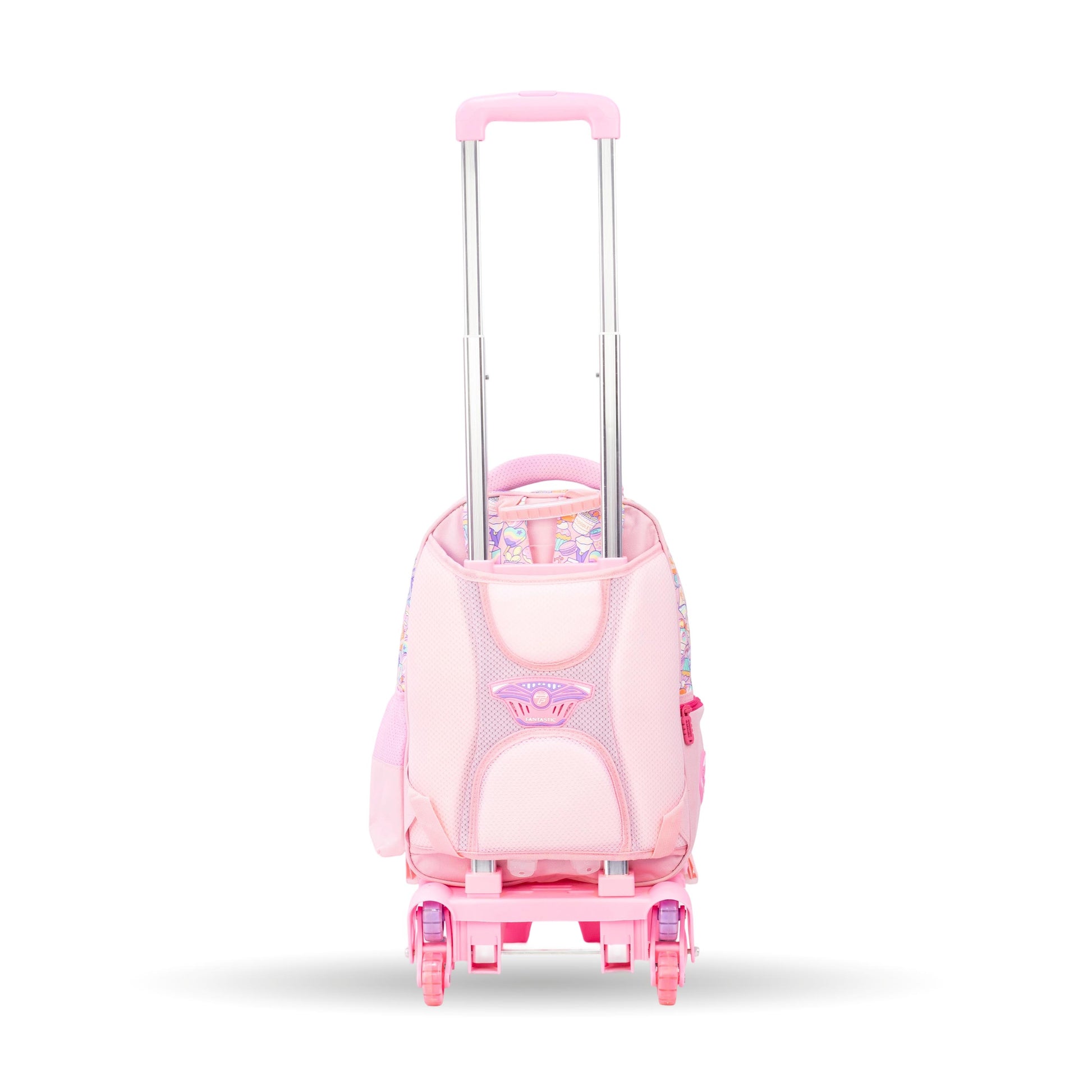 QY001T حقيبة ظهر مدرسية للأطفال، تصميم يونيكورن وآيس كريم، مع عجلات، 3 حجرات، لون وردي وبنفسجي