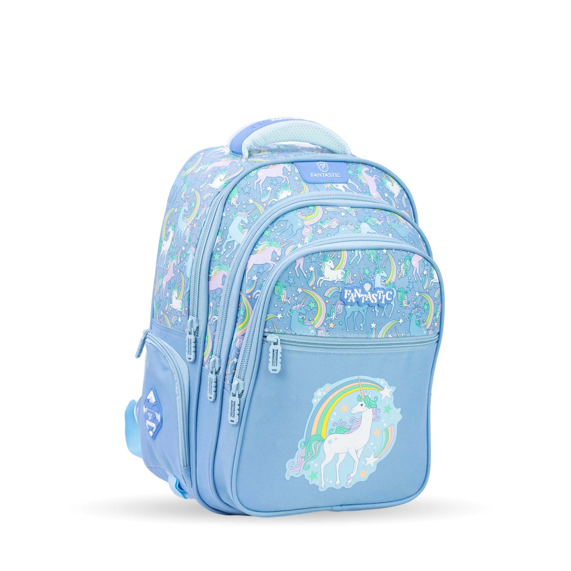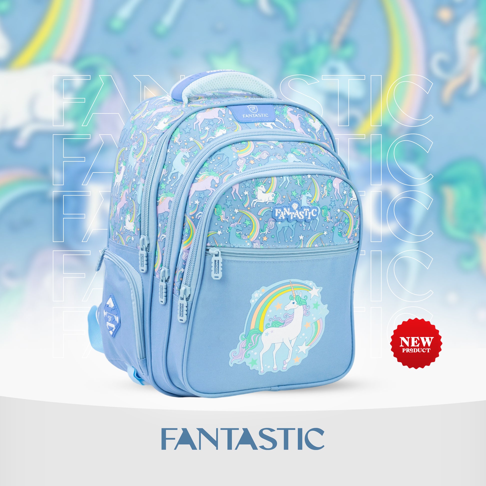 تتميز حقيبة الظهر المدرسية QY002 من فانتاستيك بتصميم فريد يجمع بين يونيكورن وقوس قزح بألوان زاهية، مما يجعلها الخيار المثالي للأطفال الذين يحبون التميز. بلون أزرق فاتح جذاب، توفر الحقيبة عدة جيوب لتنظيم الكتب والأدوات المدرسية بسهولة، مما يسهل حمل كل ما يحتاجه طفلك خلال اليوم الدراسي. تصميمها العملي والأنيق يضمن راحة الاستخدام والمتانة، لترافق طفلك في كل مغامراته المدرسية بثقة وأناقة. مقاس 17 بوصة