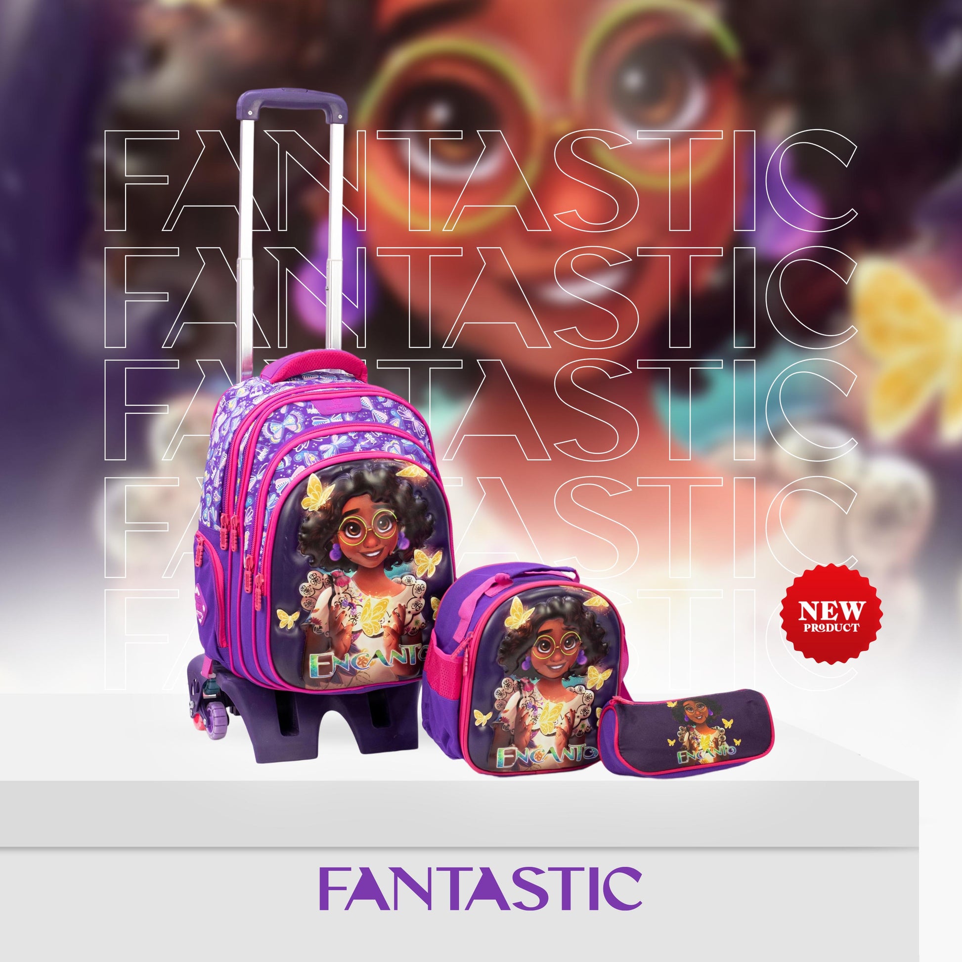 حقيبة فانتاستيك المدرسية بحجم 43سم تجمع بين المرح والعملية! تأتي مع حقيبة طعام ومقلمة بتصميم ثلاثي الأبعاد جذاب، مثالية للأطفال الذين يحبون التميز في المدرسة. خفيفة ومريحة، تساعد طفلك على تنظيم أغراضه بسهولة والاستمتاع بيومه الدراسي بكل حيوية ونشاط.مقاس 17 بوصة