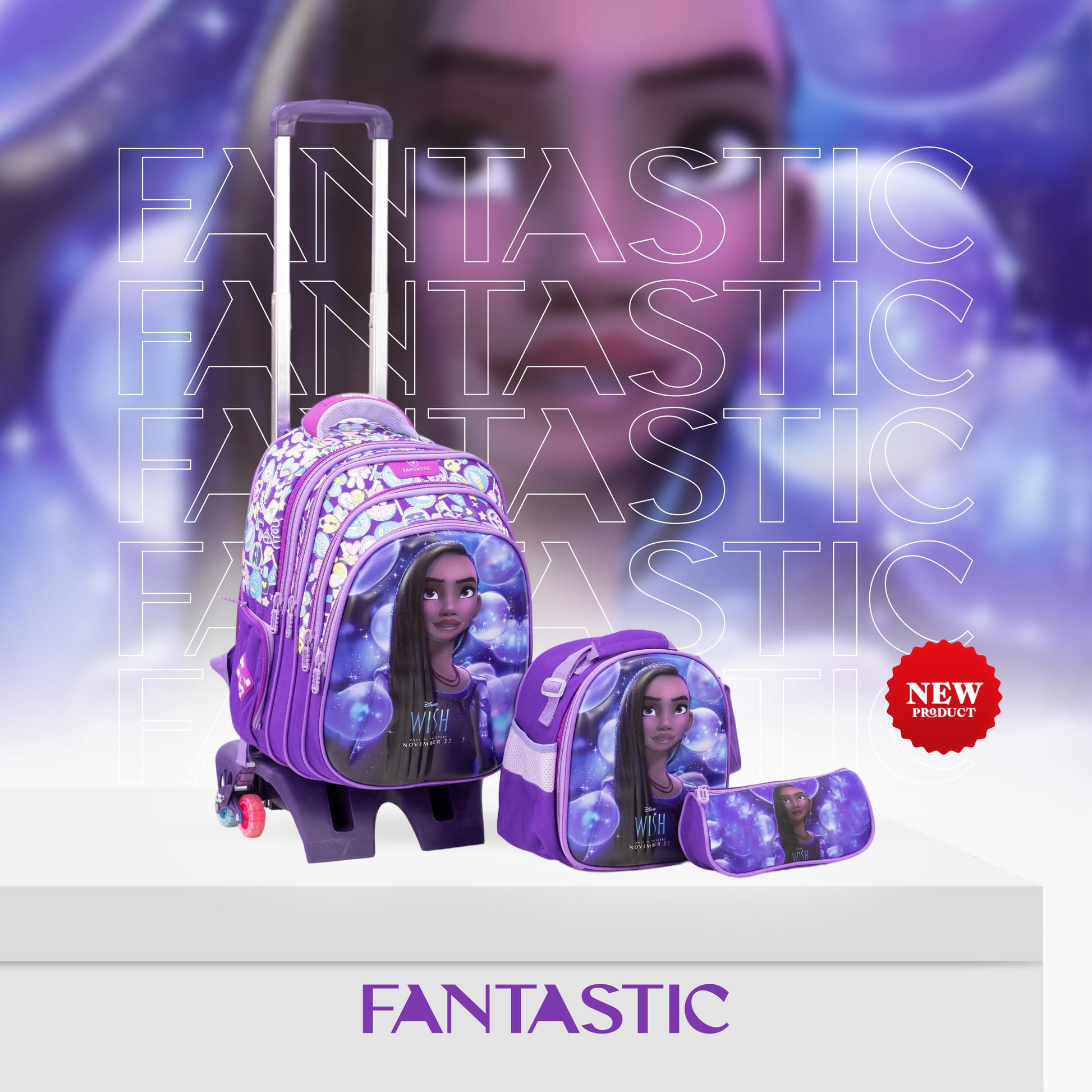 QY006T حقيبة فانتاستيك المدرسية مع عجلات ، 43سم، مع حقيبة طعام ومقلمة، تصميم ثلاثي الأبعاد، للأطفال