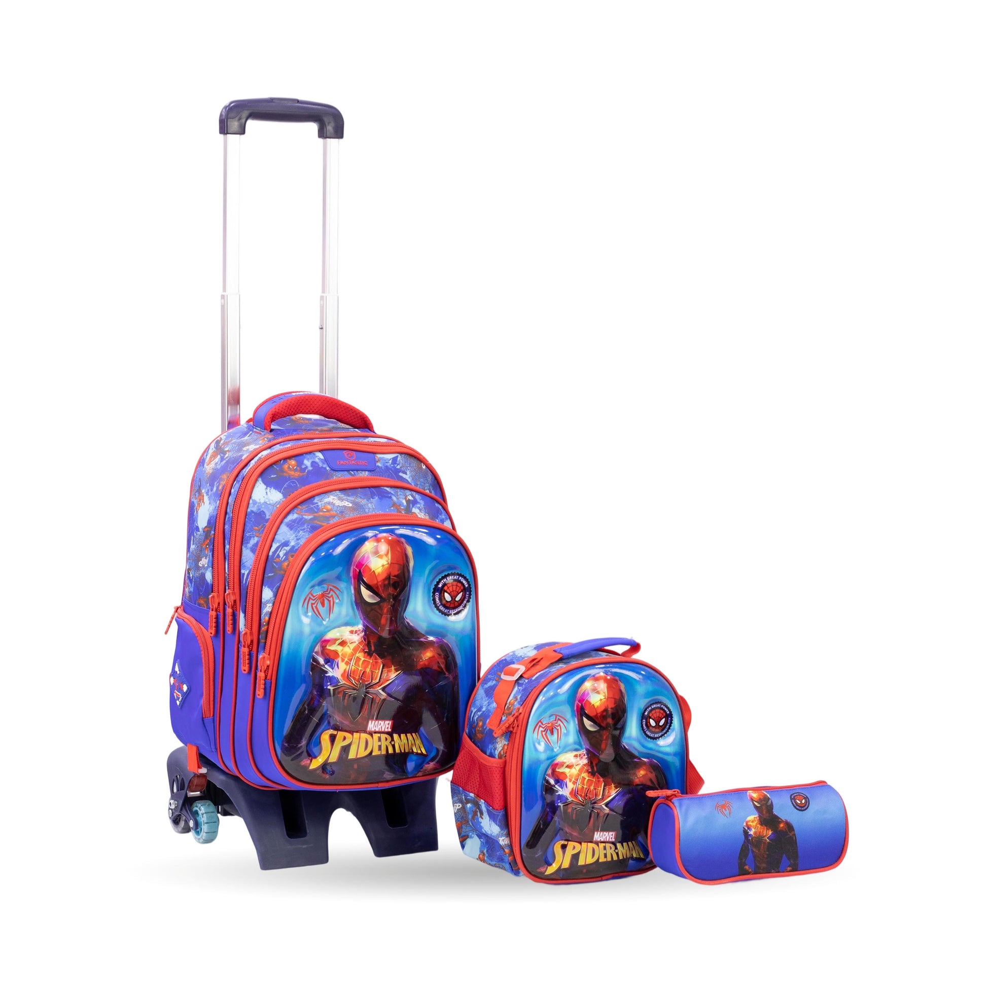 QY008T حقيبة مدرسية فانتاستيك سبايدرمان، طقم ٣ قطع مع عجلات، حقيبة ظهر مع حقيبة طعام ومقلمة، أزرق وأحمر (Copy)